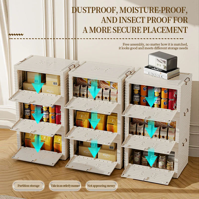 Stackable Foldable Grocery Bins Collapsible Plastic Container Organizer Clear Folding Storage Box with Lid
