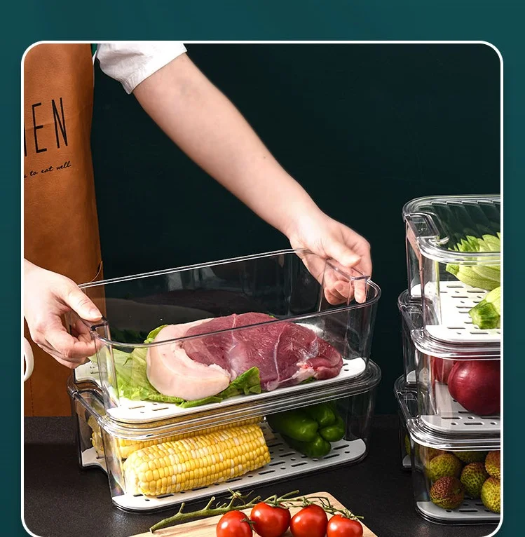 Multifunction fridge container PET white food storage freezer organizer refrigerator for kitchen