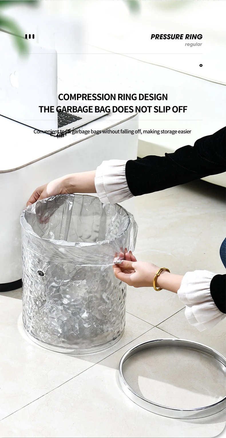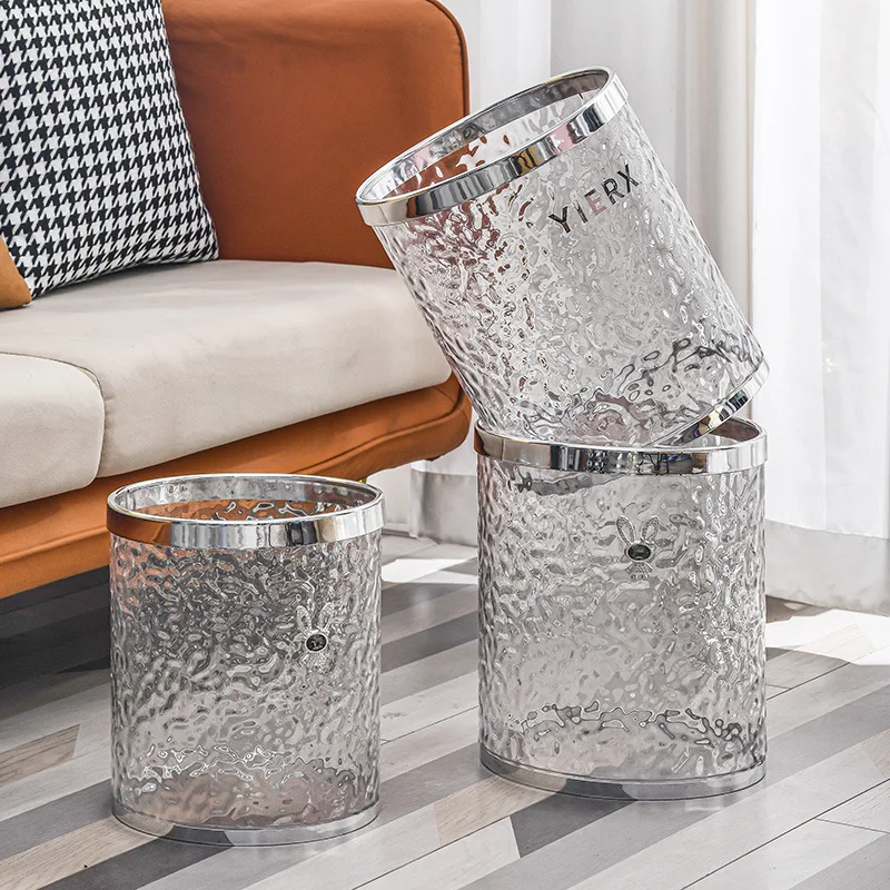 Bathroom Trash Can Transparent Waste Basket Round Garbage Can Plastic Trash Bin for Bedroom Office Living Room