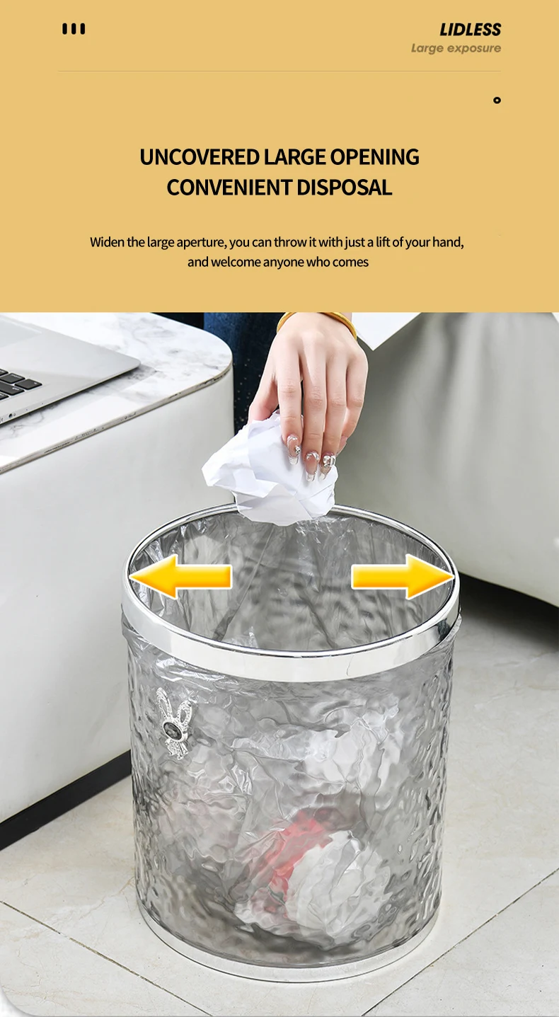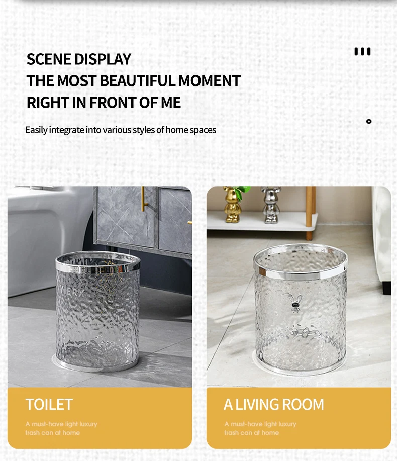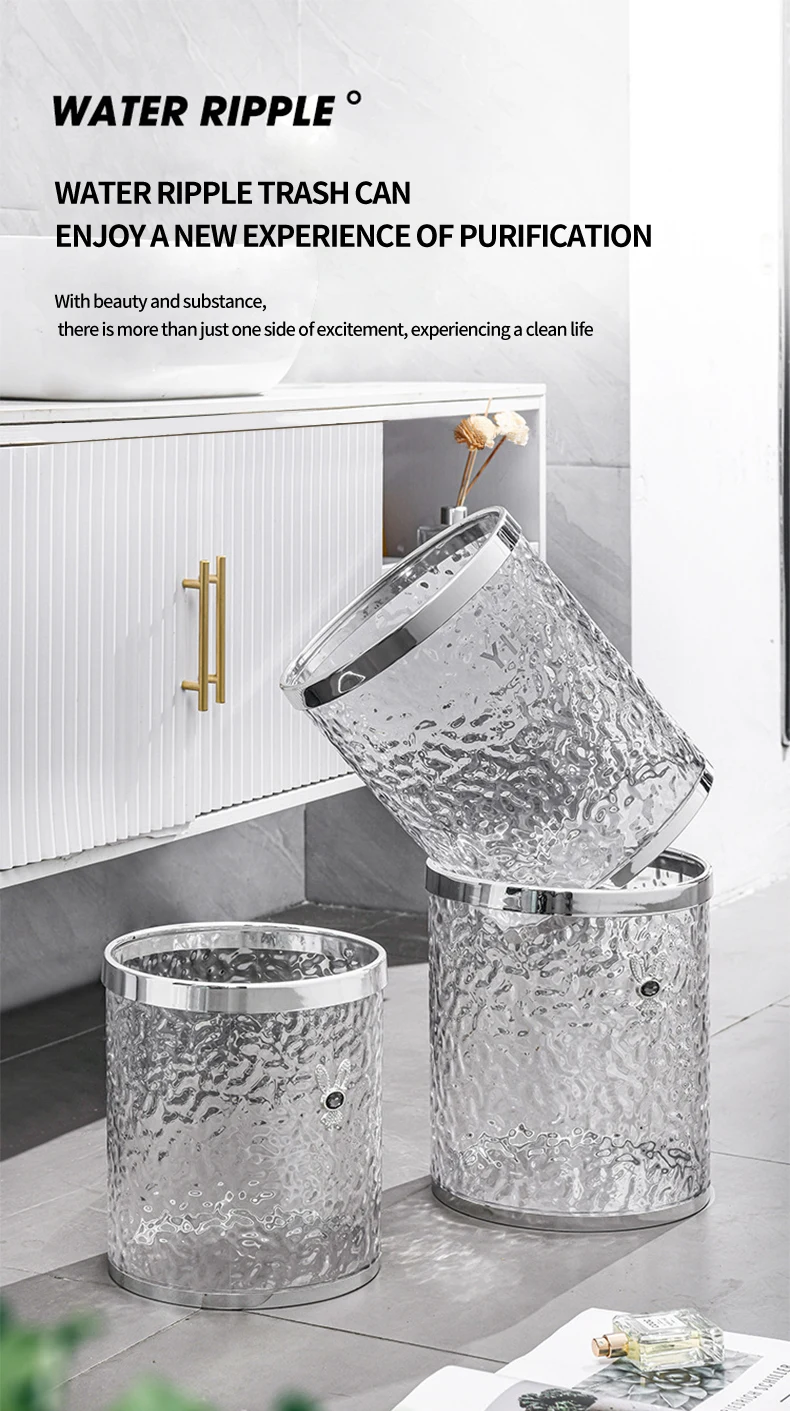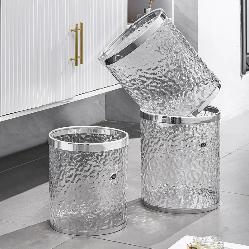 Bathroom Kitchen Transparent Wastebasket Round Open Top Garbage Bin Clear Trash Can Storage living room Waste Bin