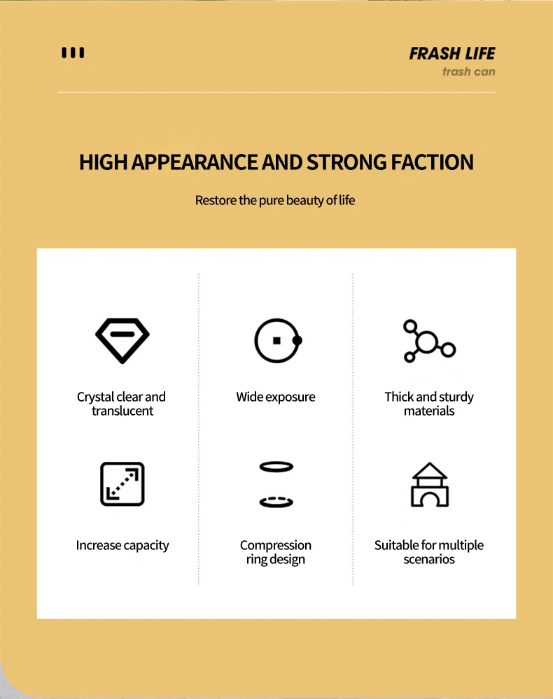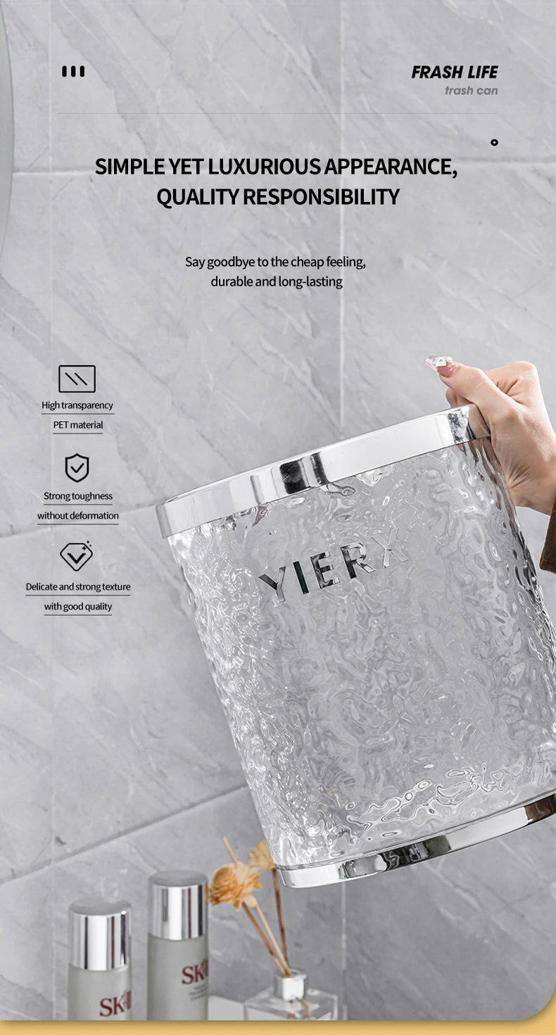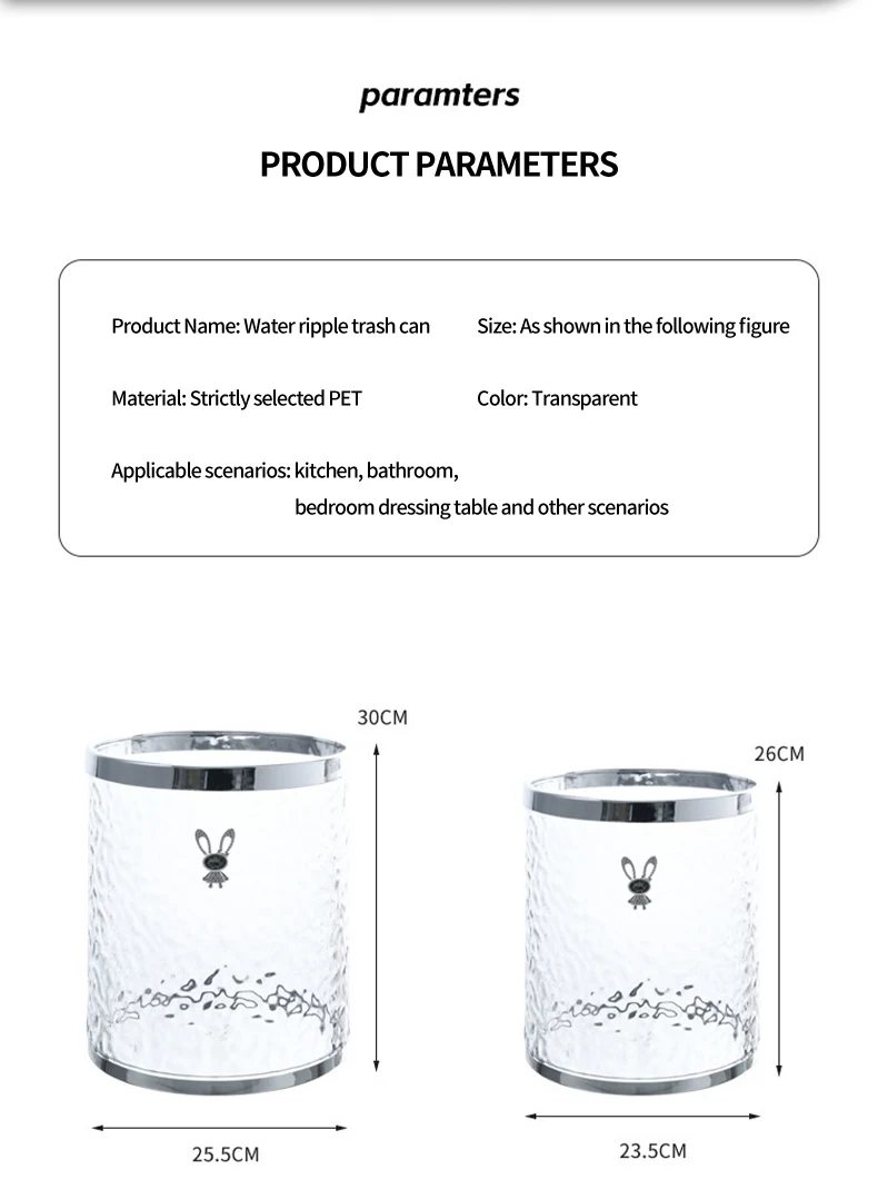 Bathroom Kitchen Transparent Wastebasket Round Open Top Garbage Bin Clear Trash Can Storage living room Waste Bin