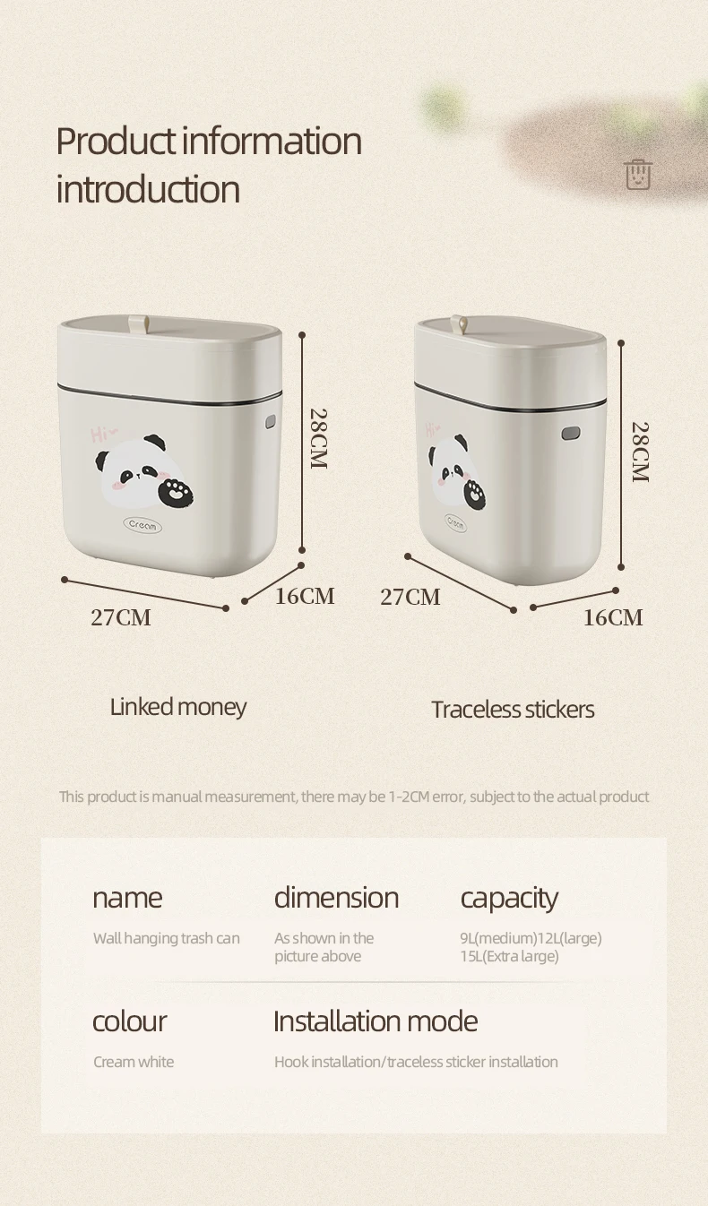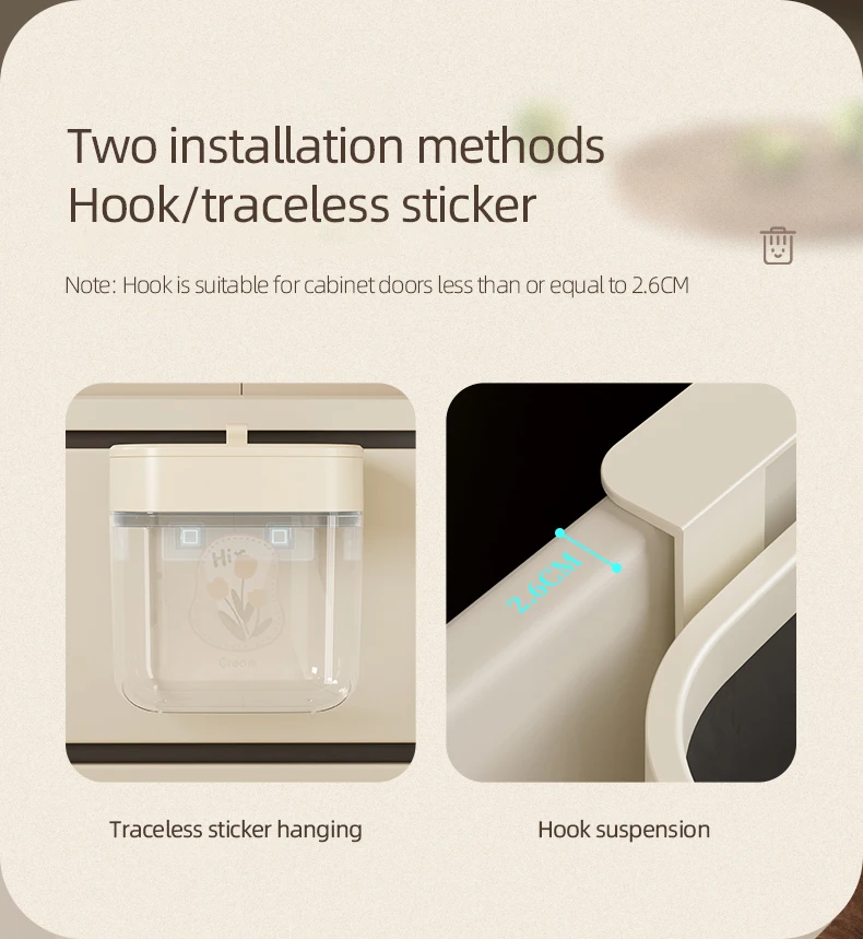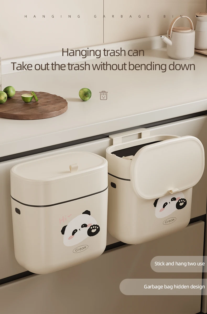 household seamless stick cabinet garbage basket Kitchen plastic trash can hanging garbage bin wall mounted trash bin
