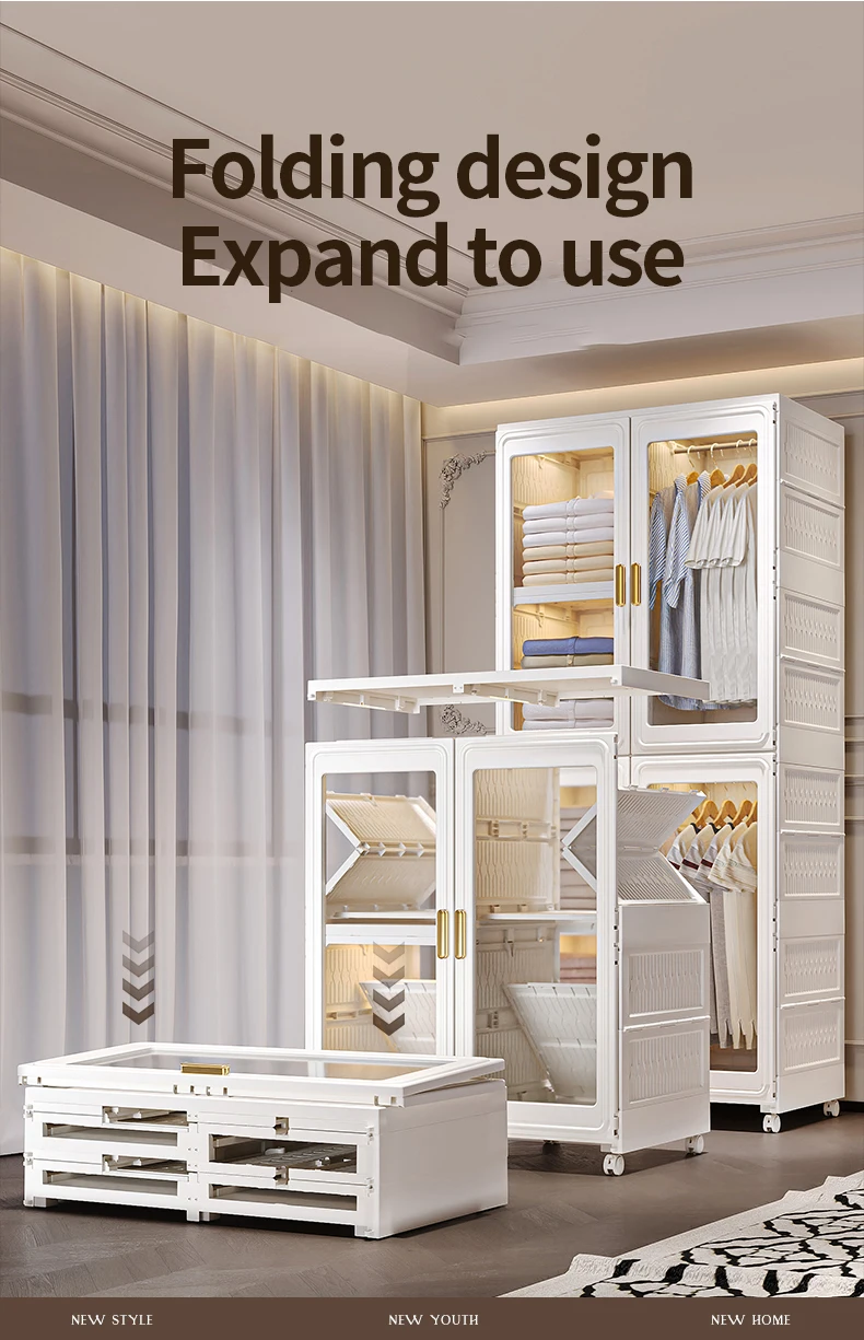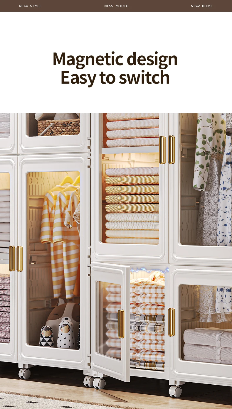 Modern Design Double Door Standing Type Plastic Foldable Wardrobe Cabinets Bedroom Storage Organizer baby plastic wardrobe