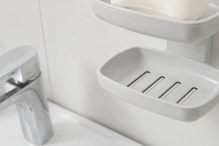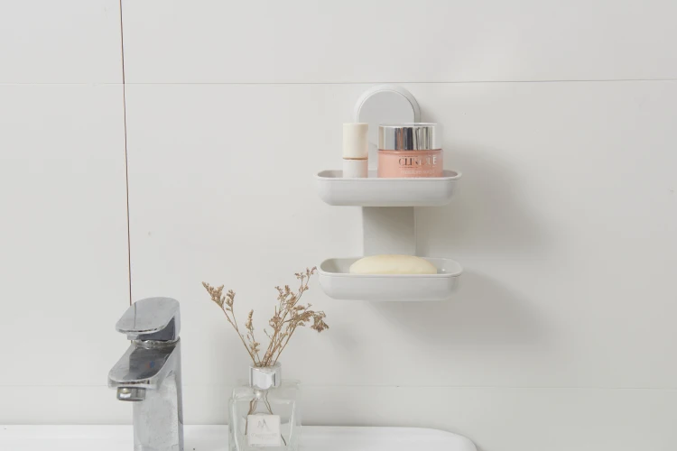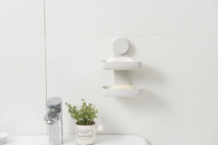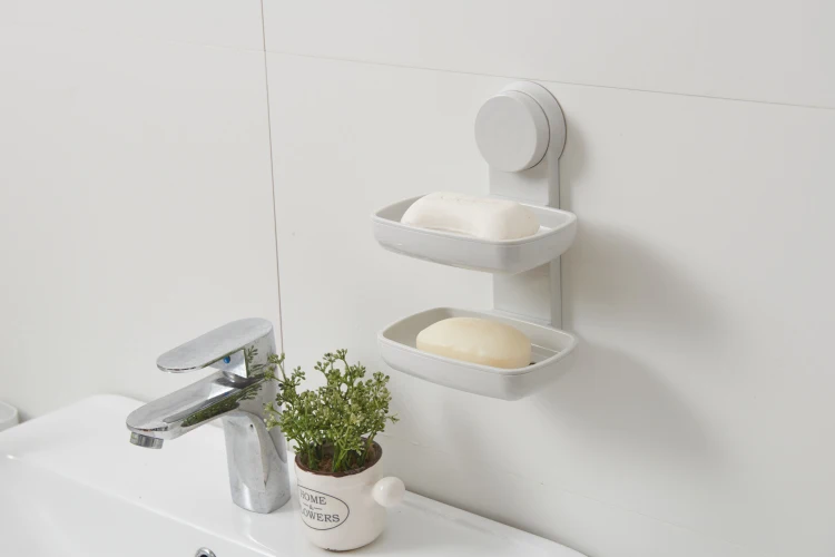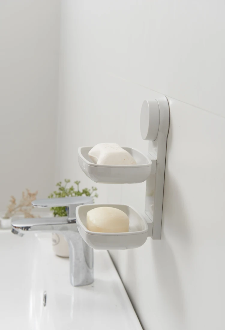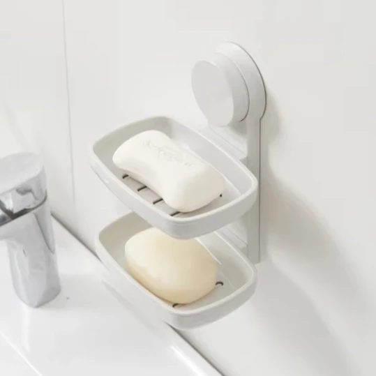 Bathroom Bathtub Shower Double Suction Cup Wall Mounted No Drill Self-Draining Soap Box Holder
