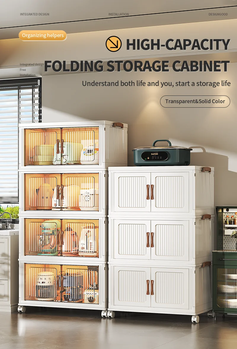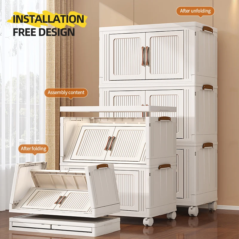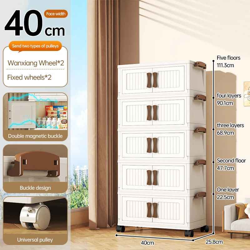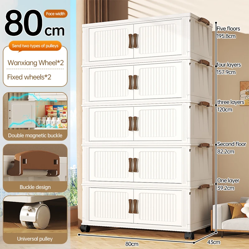 Stackable Clothes Storage Organizer Closet with wheels Transparent plastic foldable 5-layers wardrobe Household Storage Cabinet