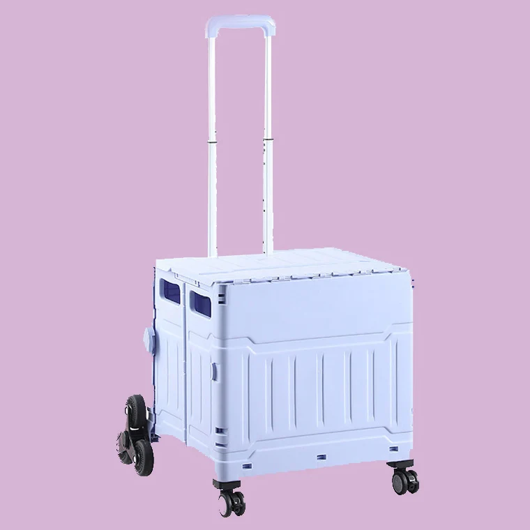 8 Wheels Eco-friendly Handle Pull Luggage Cart Steel Shopping Storage Portable Supermarket Climb Stairs Durable Folding Trolleys