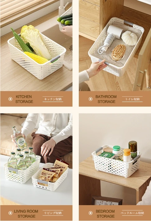 Multi-Purpose Plastic Storage Box with Handles White Home Organizer Bin plastic basket with holes waterproof plastic storage box