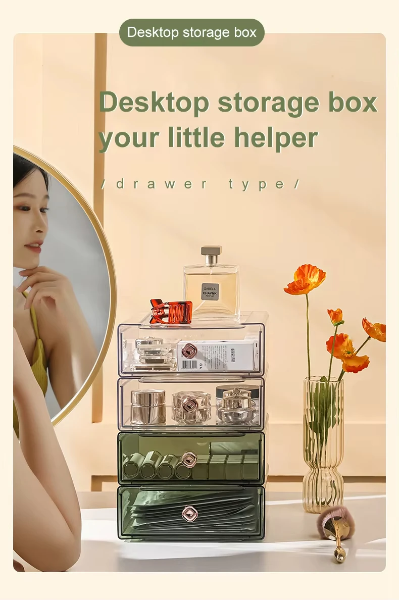 Youngest Girl Series Transparent Small Stackable Dustproof Office Stationery Desktop Drawers Storage Box With Handle