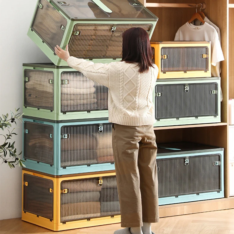 2 Color Design Foldable Boxes Bins Collapsible Stackable Cabinet Indoor Outdoor Fast Folding 5 Door Opening Container Lid Cover