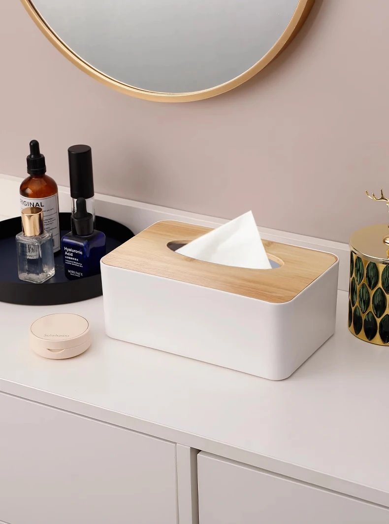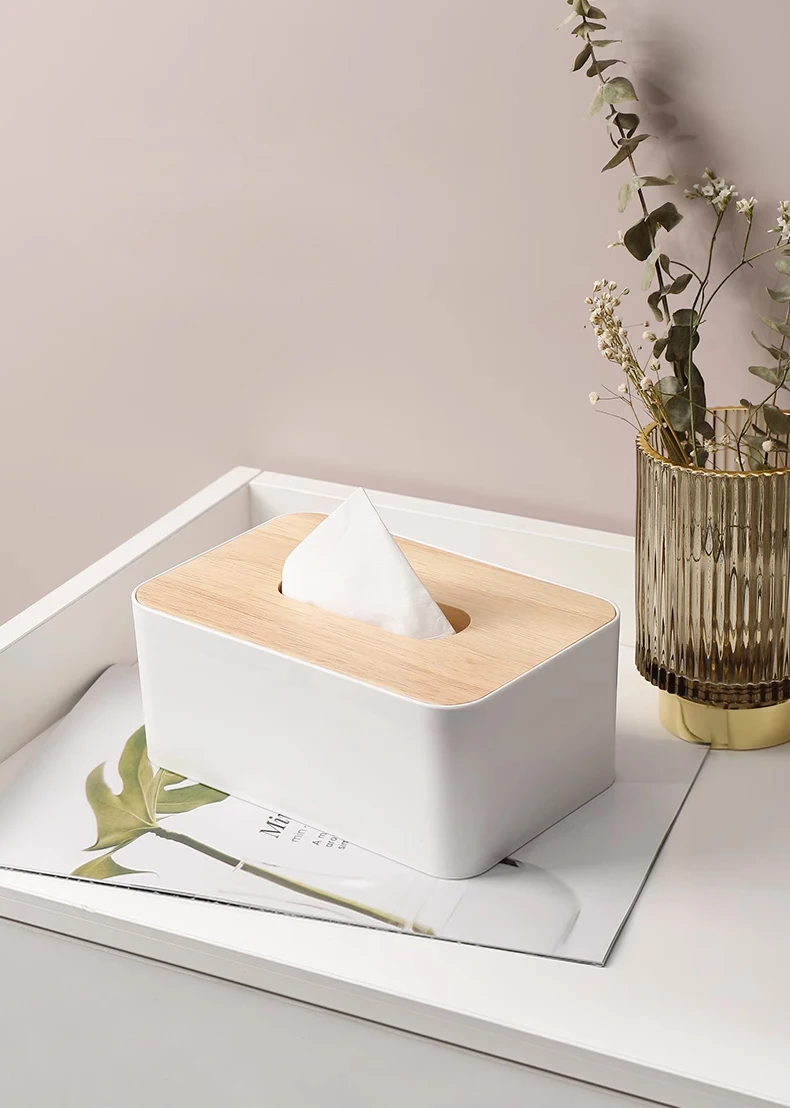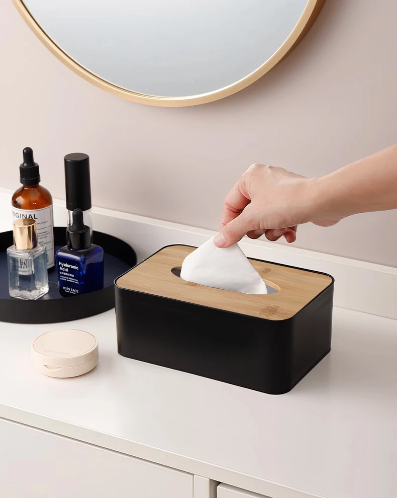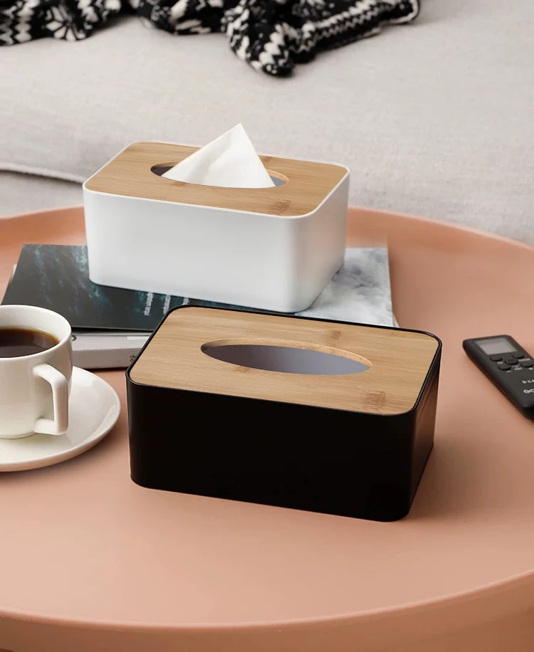Home Decoration Facial Tissue Holder Box Rectangular Bamboo Cover Tissue Storage Box