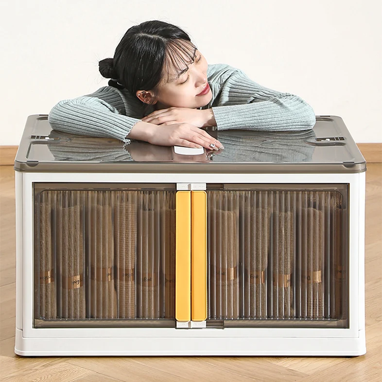 115L 5 Five Door Plastic Storage Boxes & Bins Dustproof Wholesale Container Clear Foldable Cabinet with Lid Wheels for Clothes