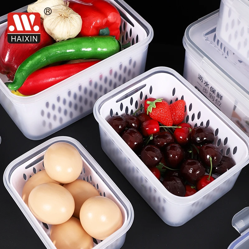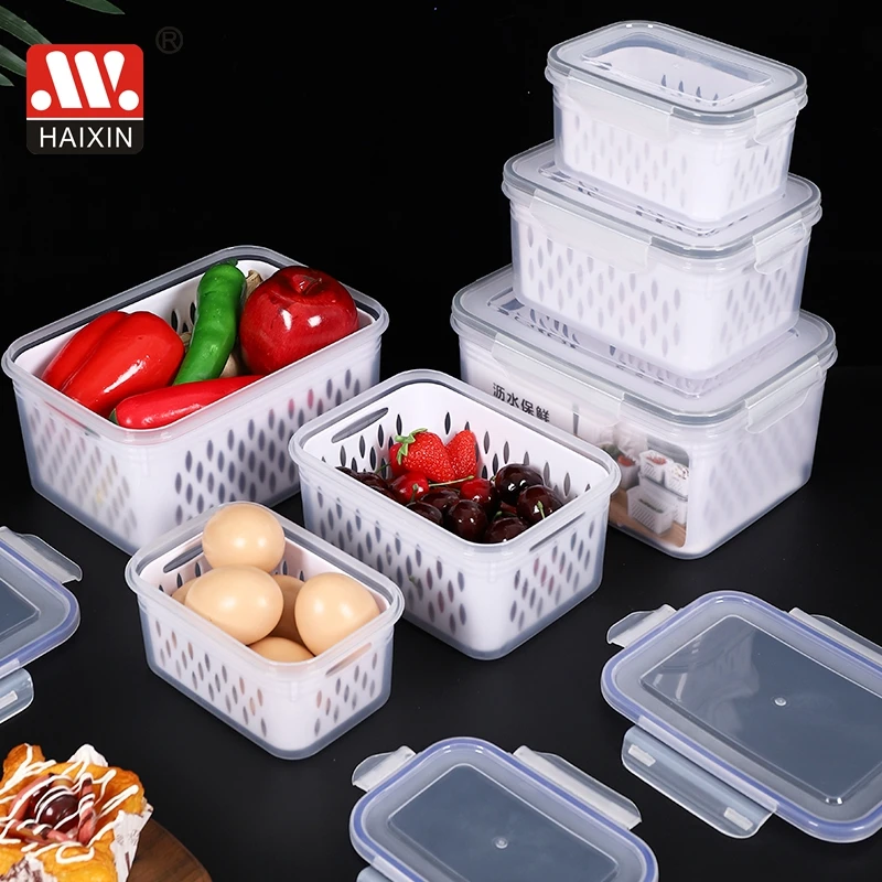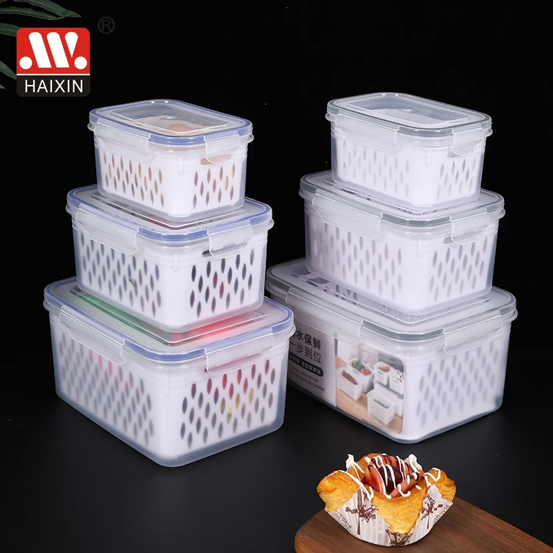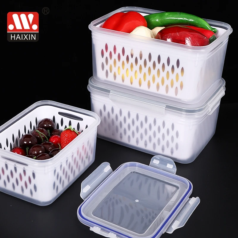 Item | Hot 3pcs Home Square Fresh Food Storage Double Layer Drain Plastic Transparent Storage Box Container Set |