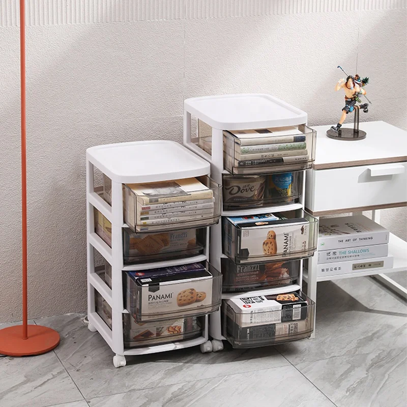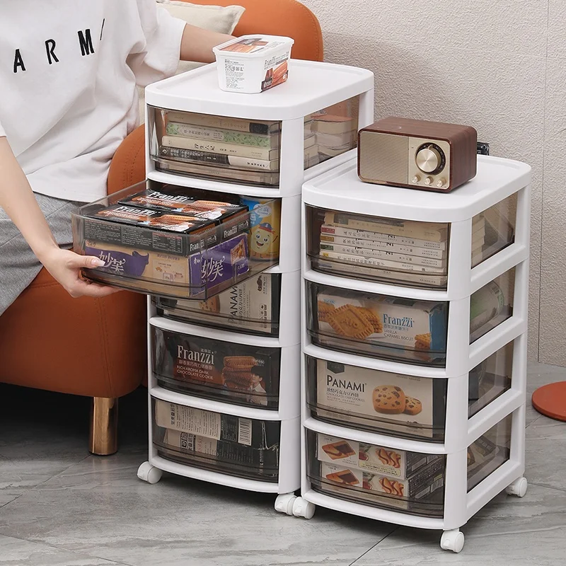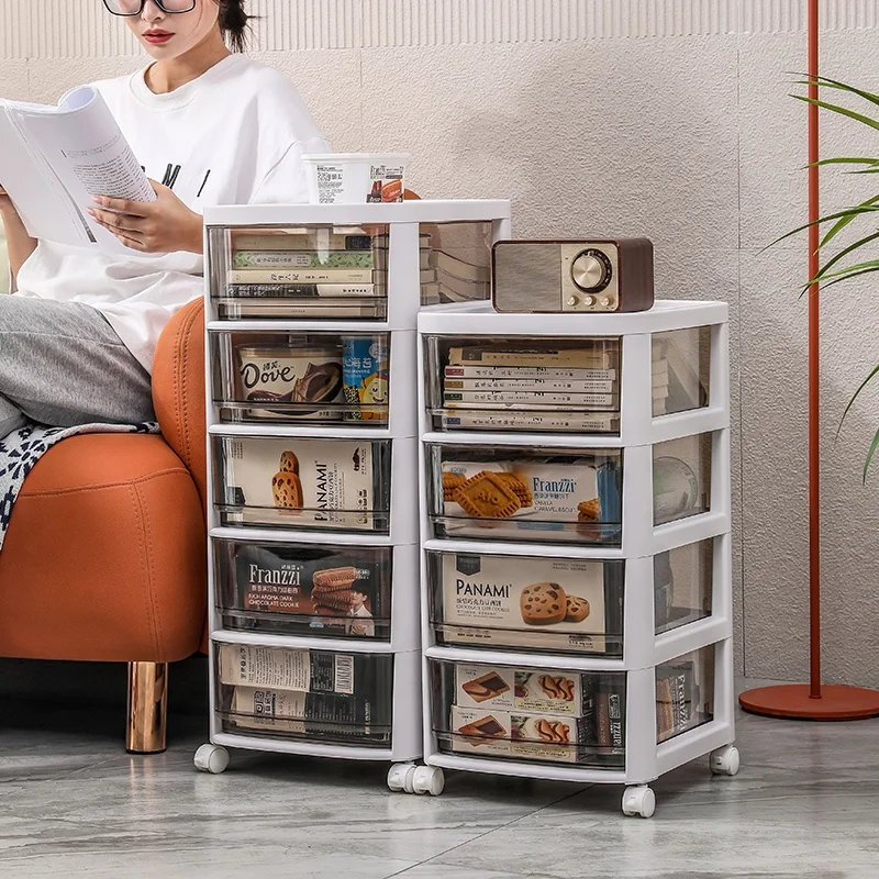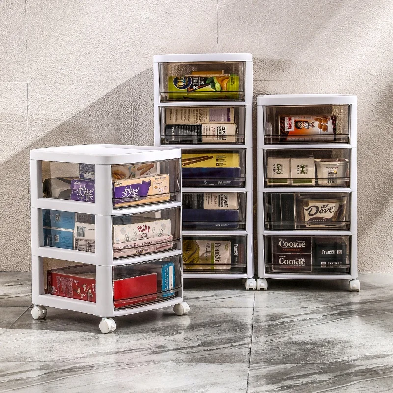 Plastics Storage Cabinet Drawers Large Capacity Living Room Food Snacks Transparent Drawer Plastic Toys Storage Rack With Wheels