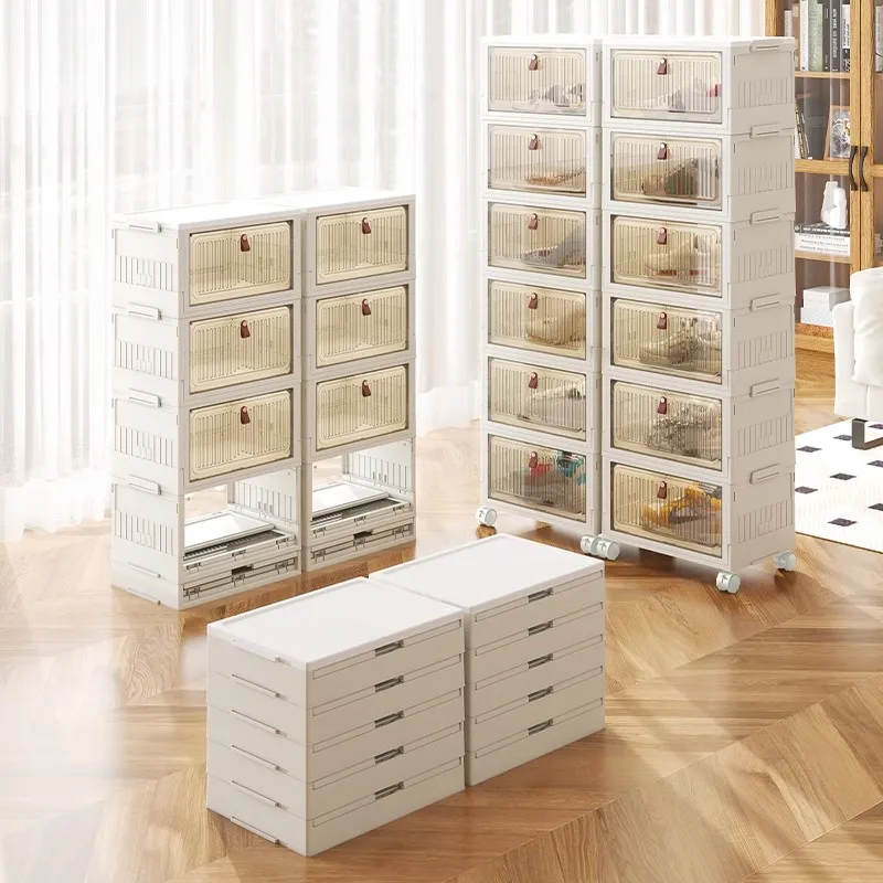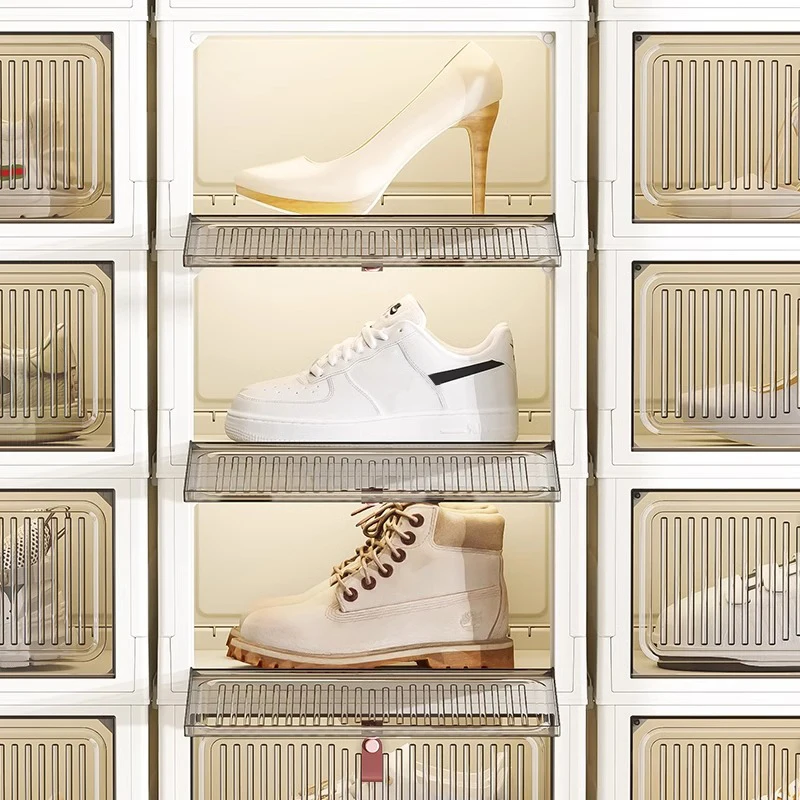 Magnetic Buckle Foldable Sneaker Box Sliding Door Folding Dustproof Cabinet Desktop Plastic PP Rack Storage Shoe Boxes and Bins