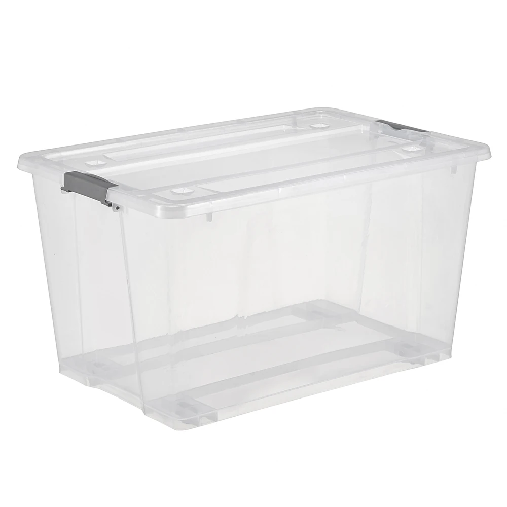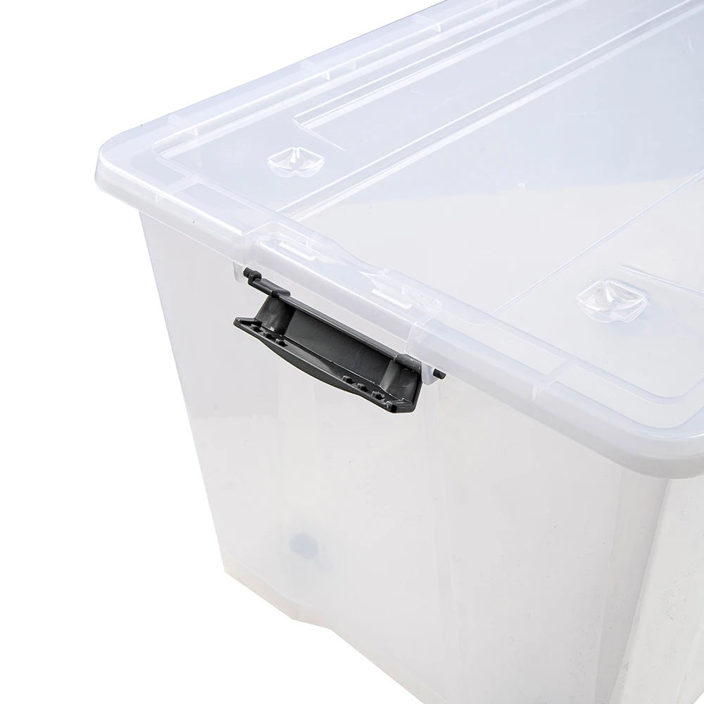 New design 50L clear plastic transparent storage box with wheels