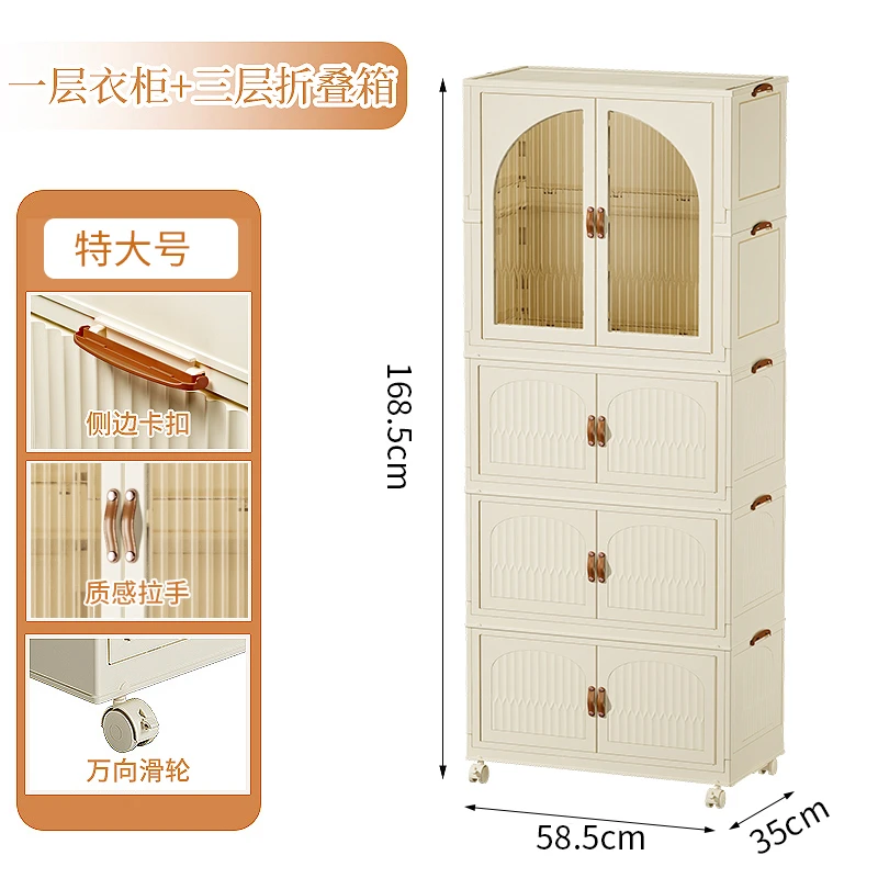 Modern Design Mobile Storage Cabinet Organizer Foldable Portable Plastic Wardrobe with Wheels for Bedroom Baby Clothes Wardrobes