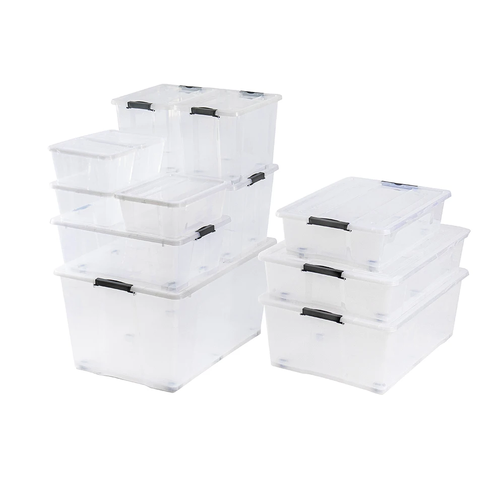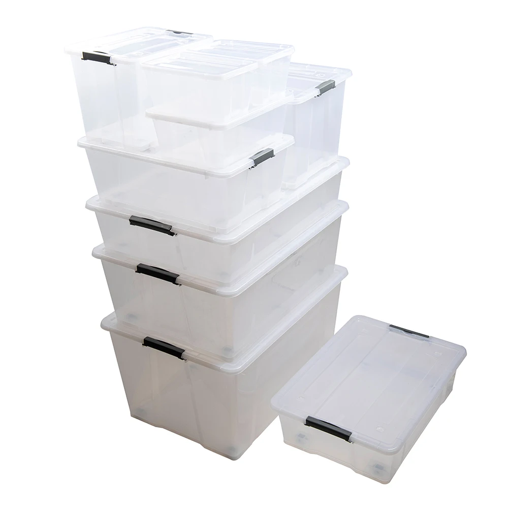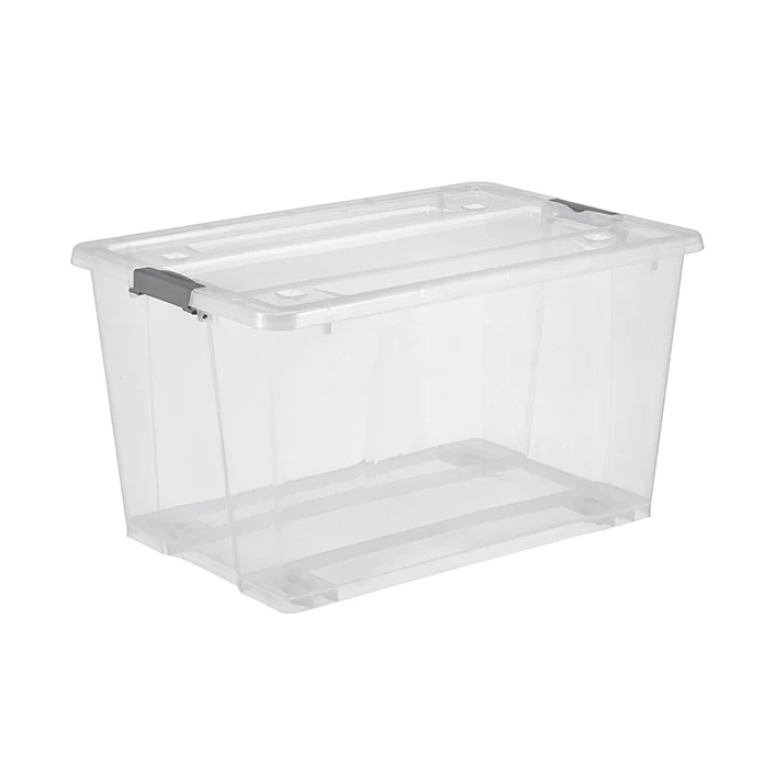 New china design 50L clear plastic transparent storage box with wheels