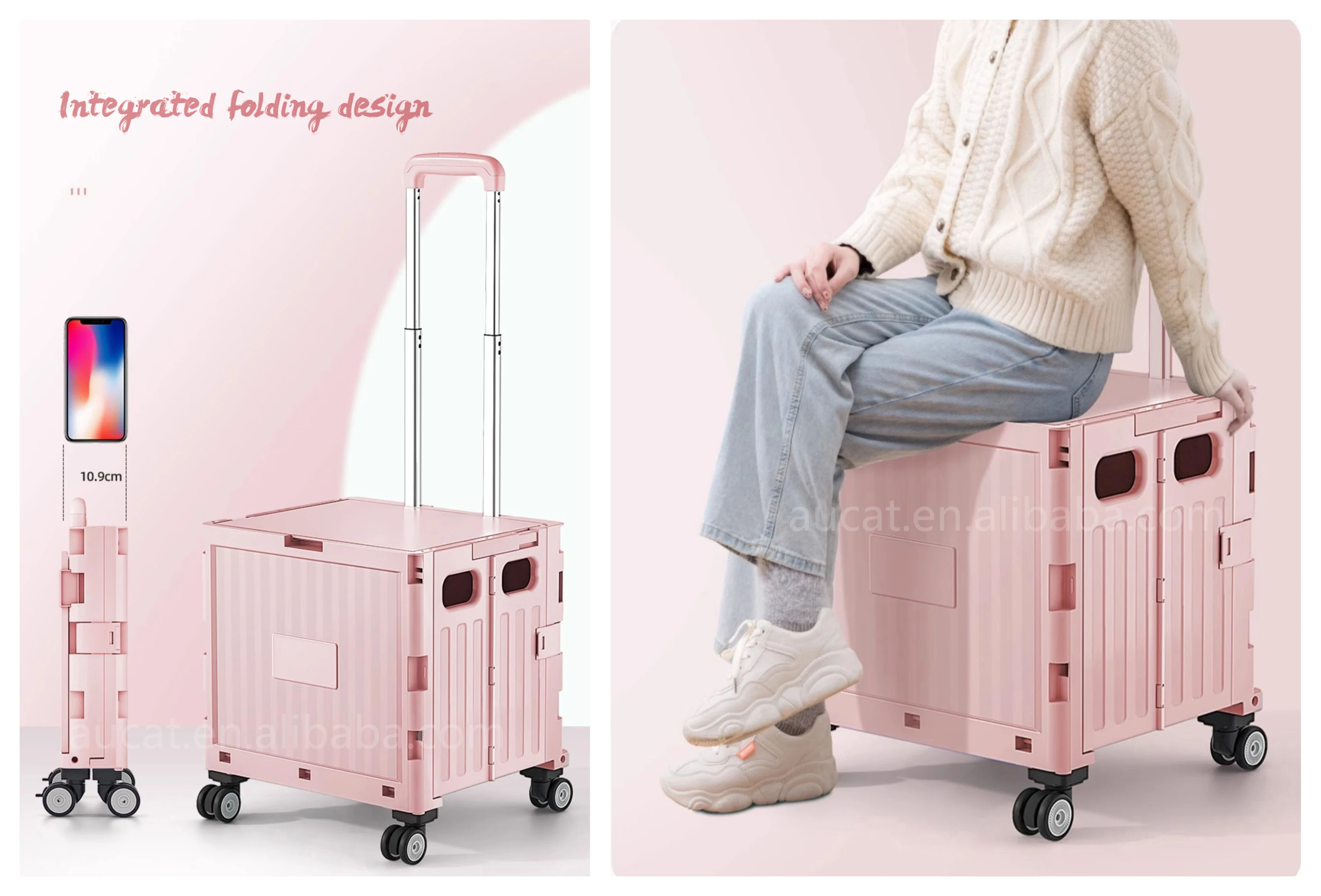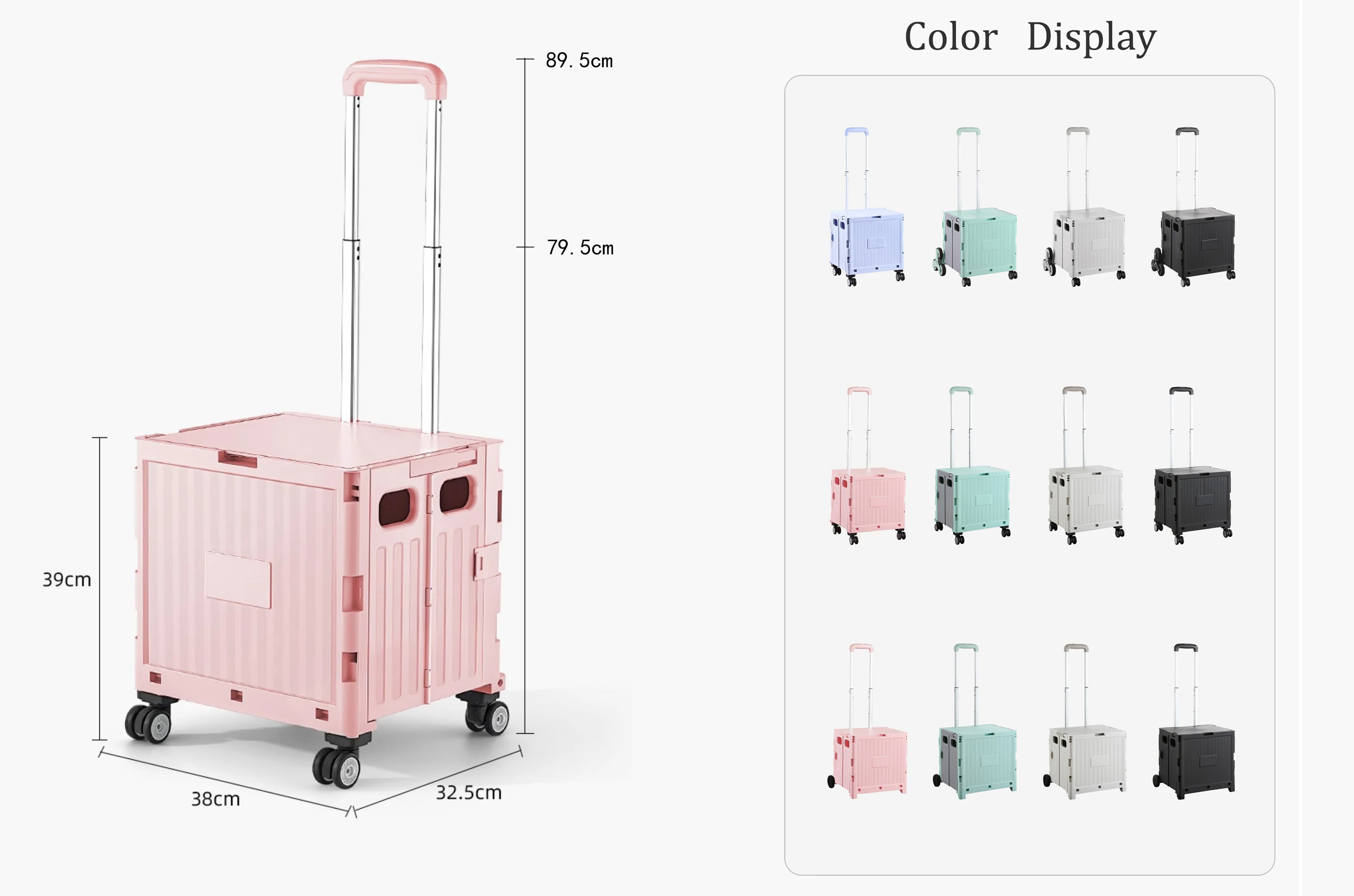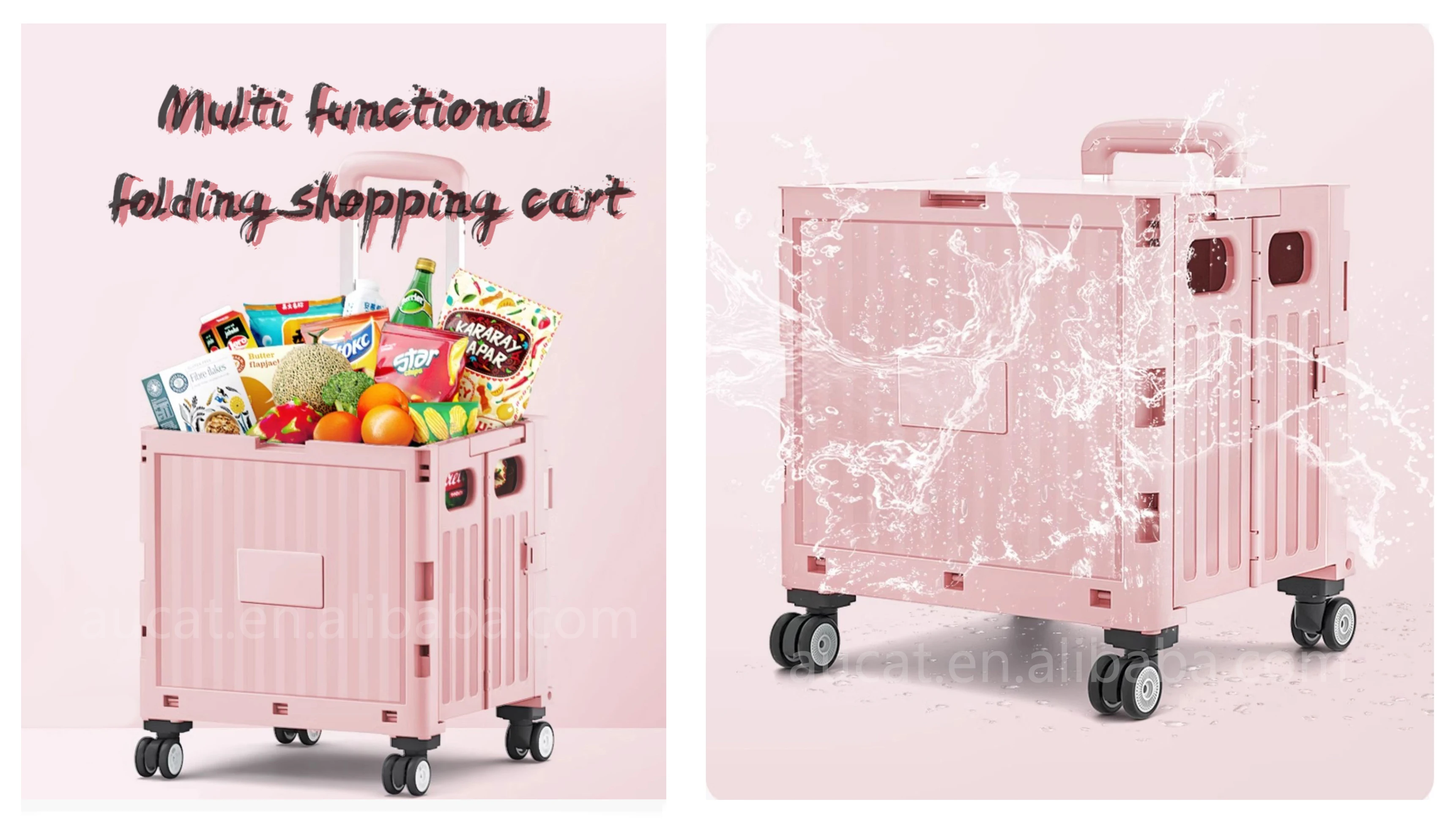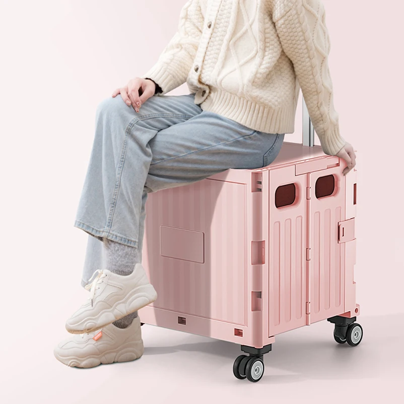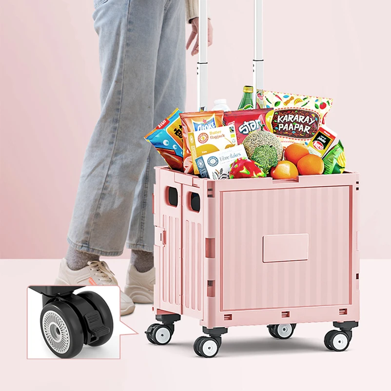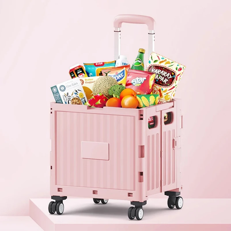 Factory Grocery Folding Shopping Cart Bags Shopping Cart Storage Organizer Stair Climbing Trolley Foldable Trolley Plastic Pink