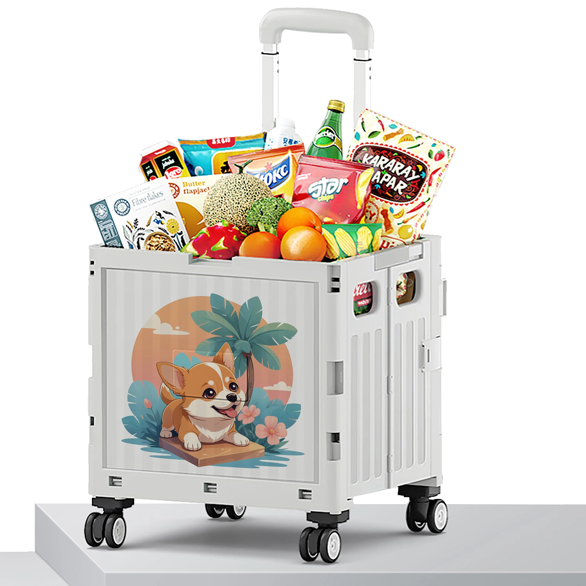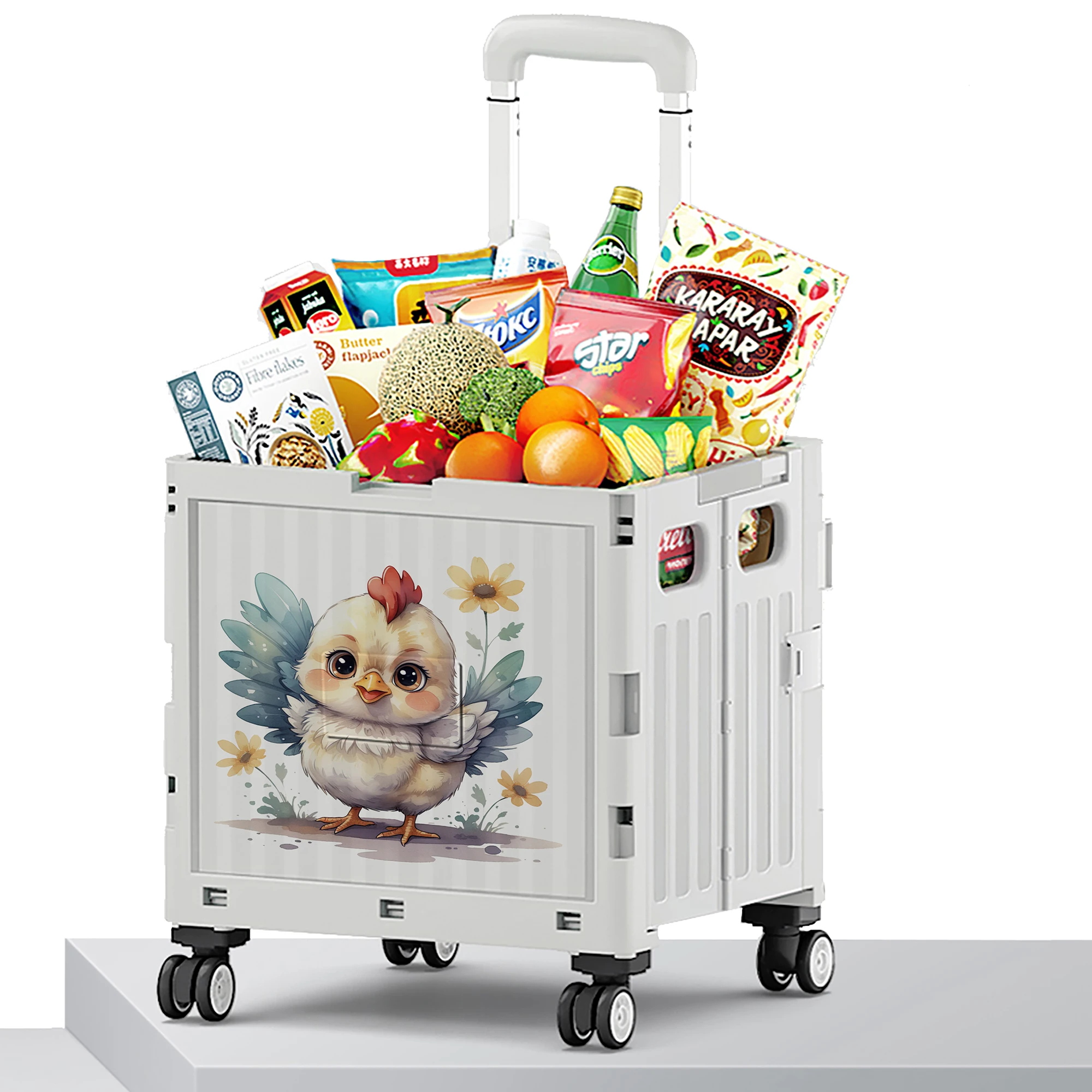 Wholesale 4 Wheel Plastic Foldable Luggage Cars Market Portable Carts 12 Chinese Zodiac chook shape Folding Shopping Trolleys