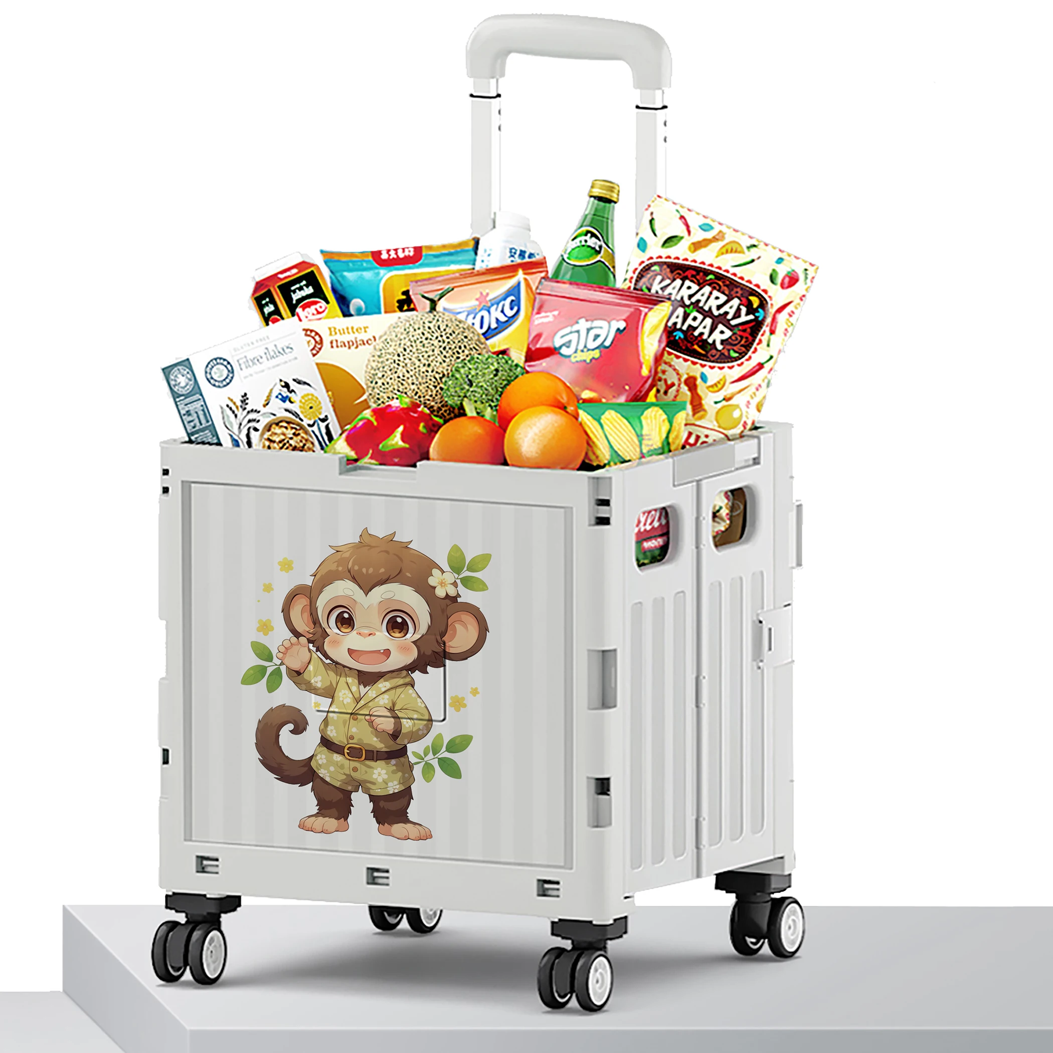 Folding Shopping Trolley Carts Supermarket Portable Durable Iron Tie Rod New Design Trolleys Carts 12 Chinese Zodiac Monkey