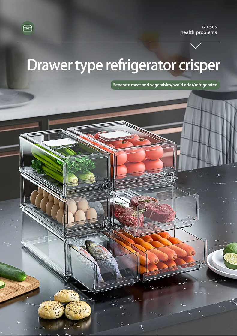 AU CAT Plastic Stackable Kitchen Storage Box Kitchen Cabinet Refrigerator Freezer Organizing Snacks Vegetable Storage Box