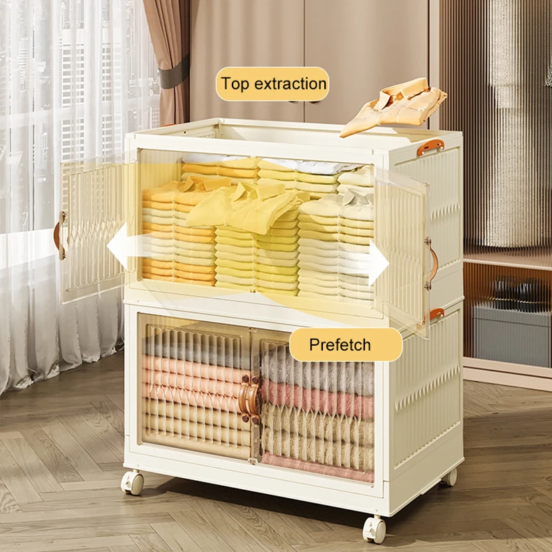 Stackable Collapsible Storage Bins with Lids Wheels Closet Organizers and Storage Cabinet Plastic Foldable Folding Box
