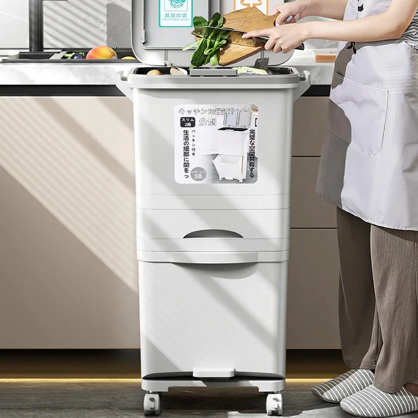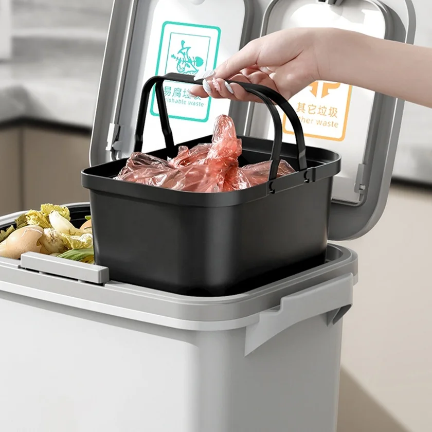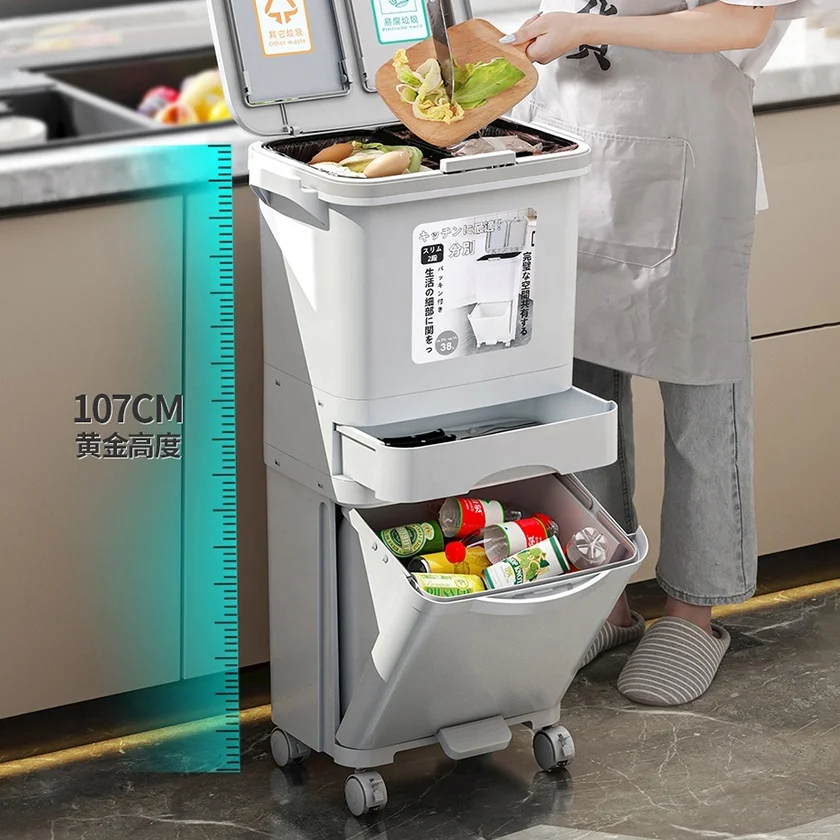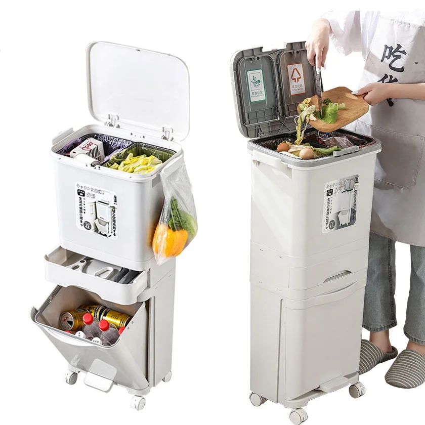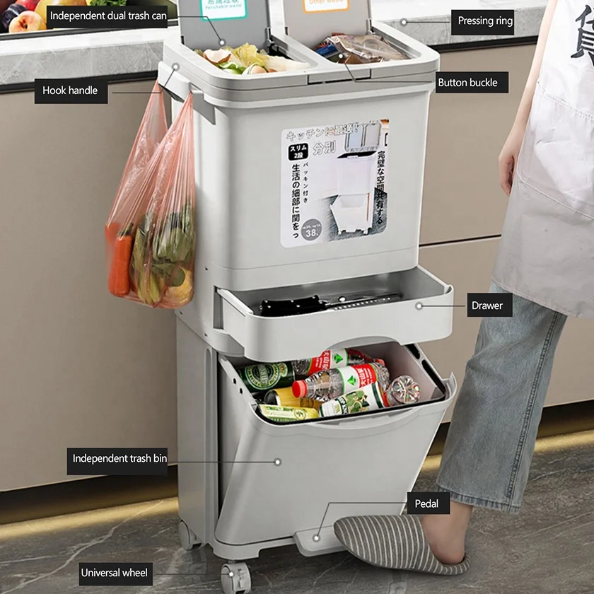 Classify Sorting 8 10 Gallon Drawer Double Layer Tier Dry Wet Separation Dust Waste Bin Kitchen Garbage Trash Can wit Lid