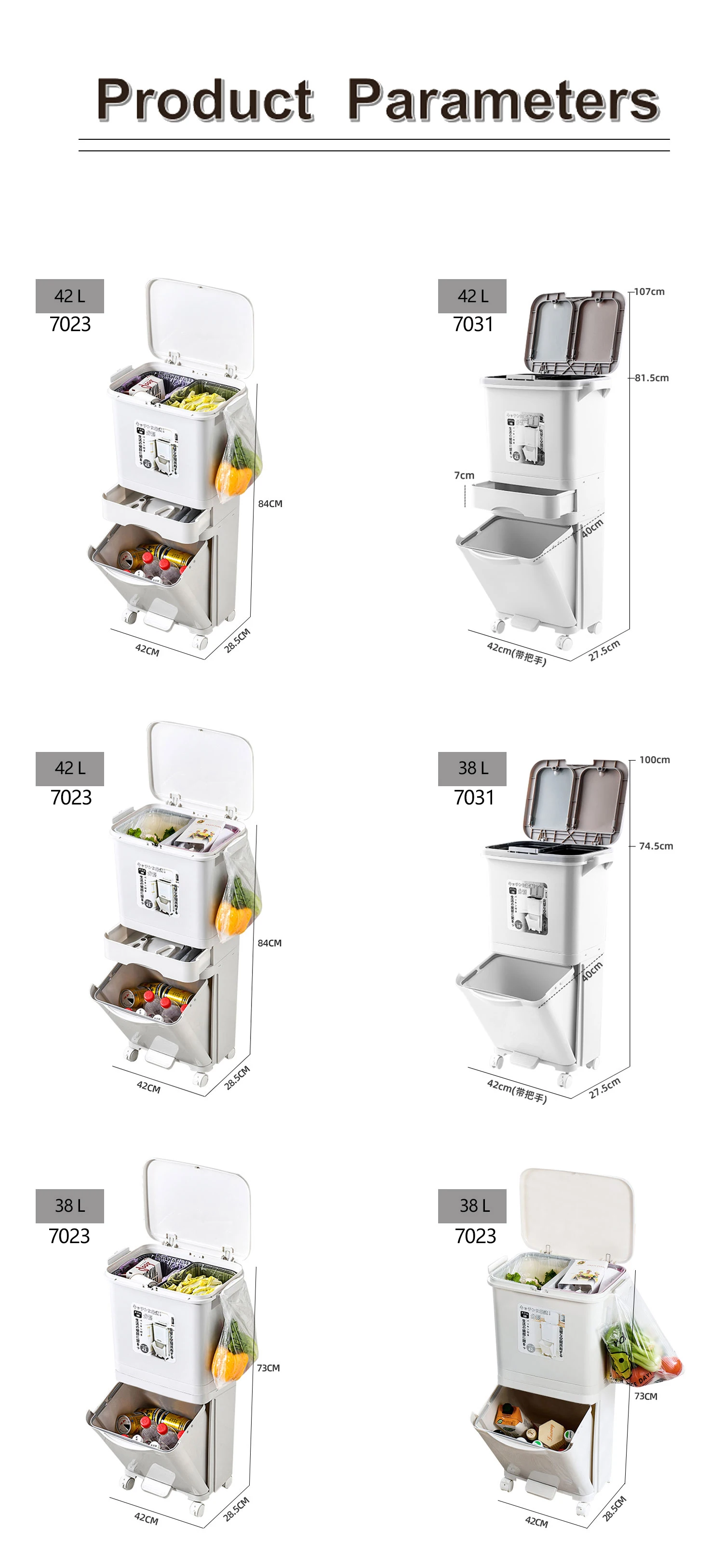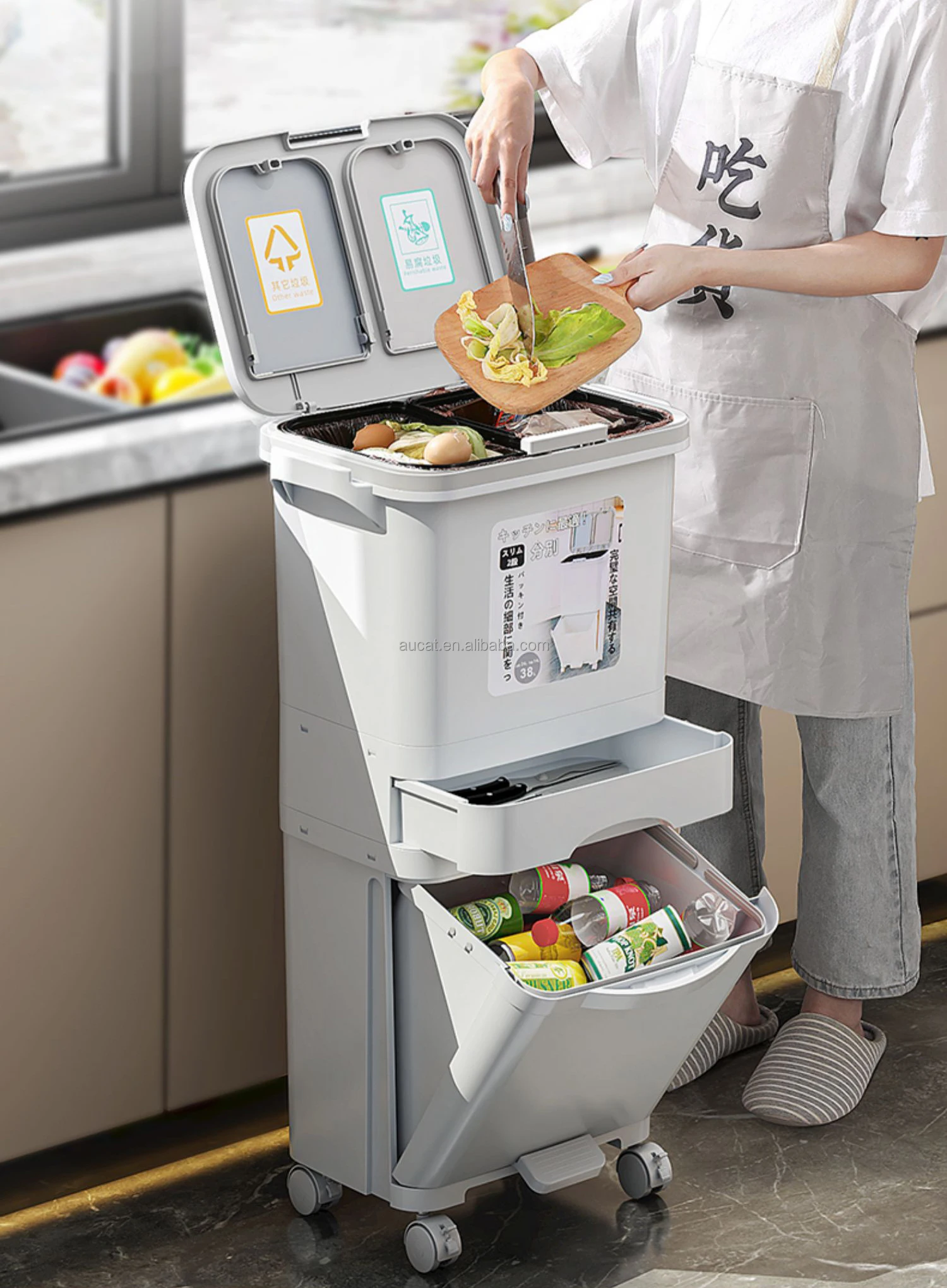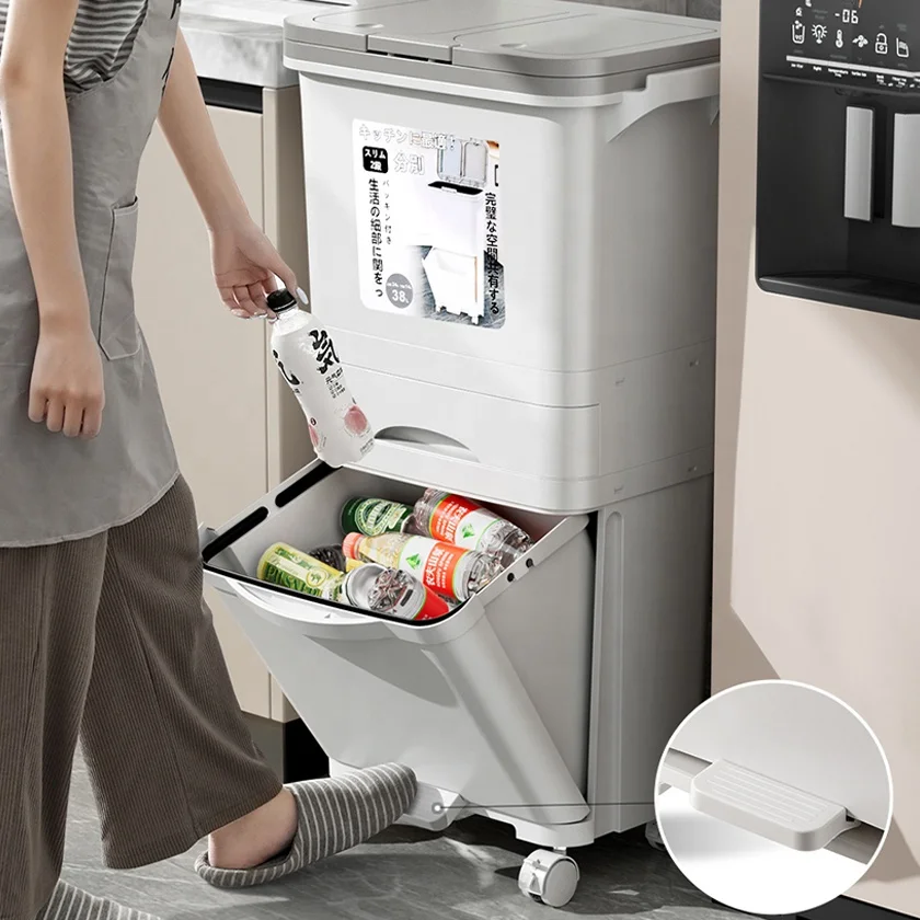 Classify Sorting 8 10 Gallon Drawer Double Layer Tier Dry Wet Separation Dust Waste Bin Kitchen Garbage Trash Can wit Lid