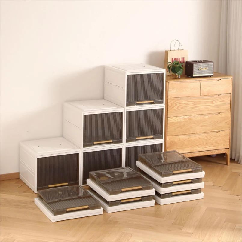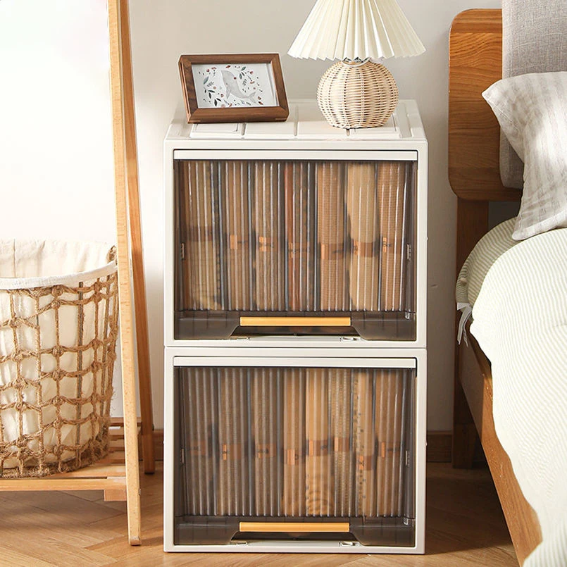2024 Thickening Clothes Storage Boxes Bins Household Wardrobe Folding Foldable Brown Clear Storage Drawer Container Organizer