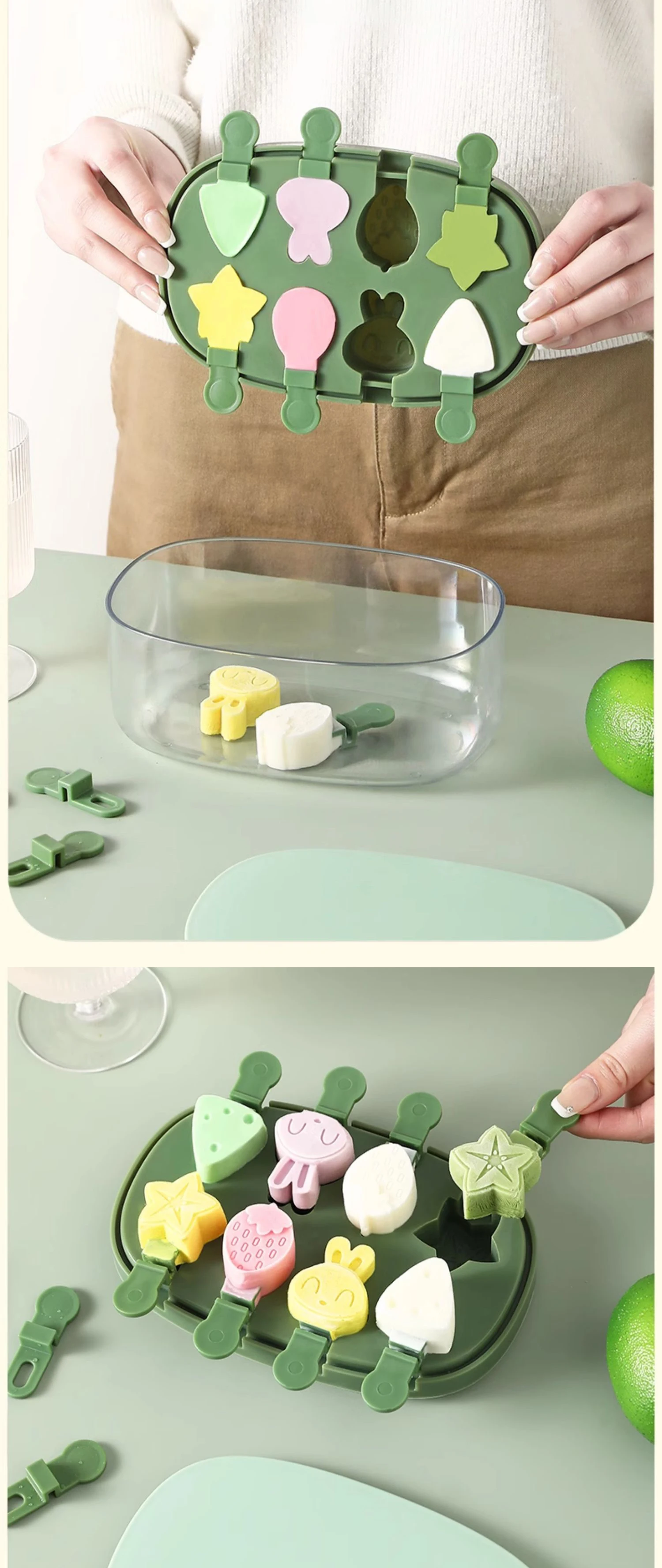 Drinks Coffee Cool Summer Popsicle High Quality Beauty Clear Green Silicon Soft Ice Mold for Freezer Stackable Ice Trays