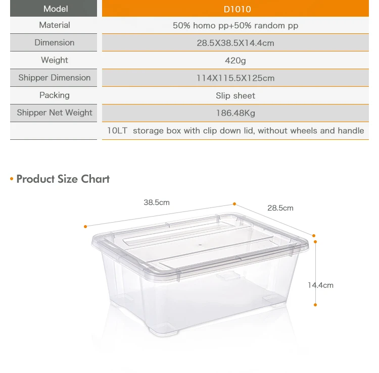 10L clear plastic clothing storage box with lids