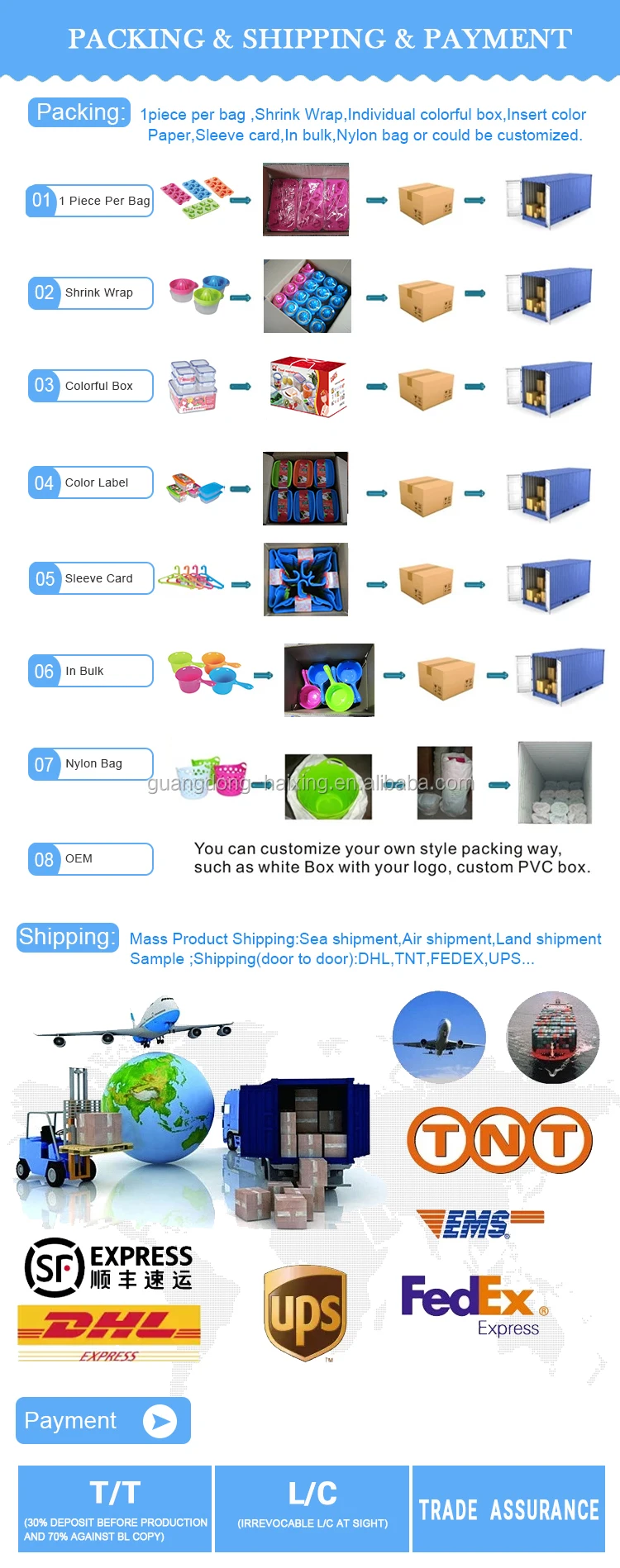 6. How many items can be assorted in one container? -Normally no more than 10 items/20ft, no more than 20 items/40ft. However, if you need too many items assorted in one container, we have to wait for the other orders to reach the MOQ for each item and arrange production at the same time. In this case the delivery time will be much longer and you can not choose the colors.