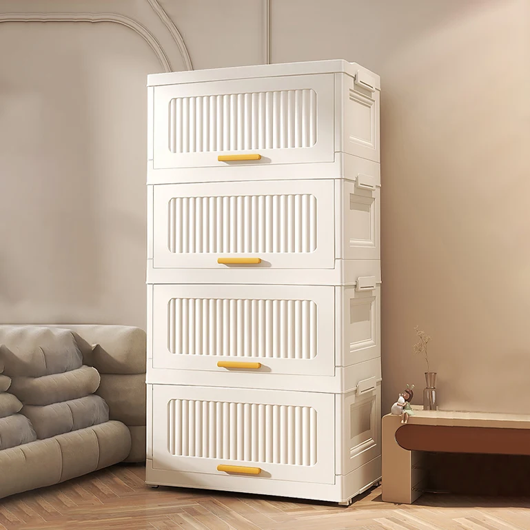 1pc Home Use Durable OEM Stackable Case PP Good Quality Flip Over Lid Fast Folding Storage Boxes and Bins Cabinet Plastic Clear