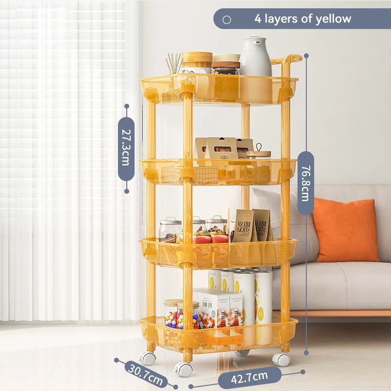 Item | Kitchen Bathroom 4 Layer Yellow Gray Vegetable Storage Cart Trolley Translucent Plastic Storage Rack With Wheel |