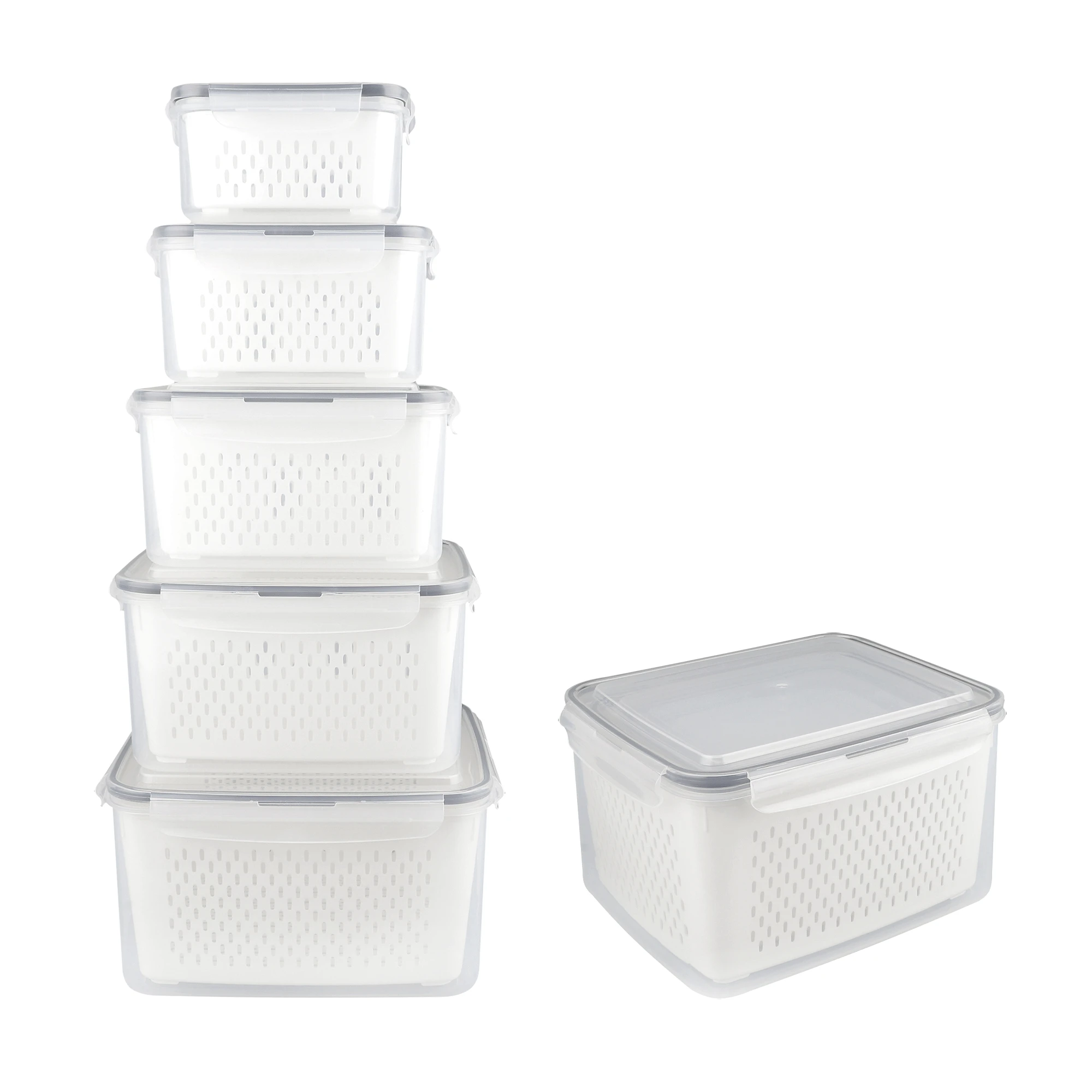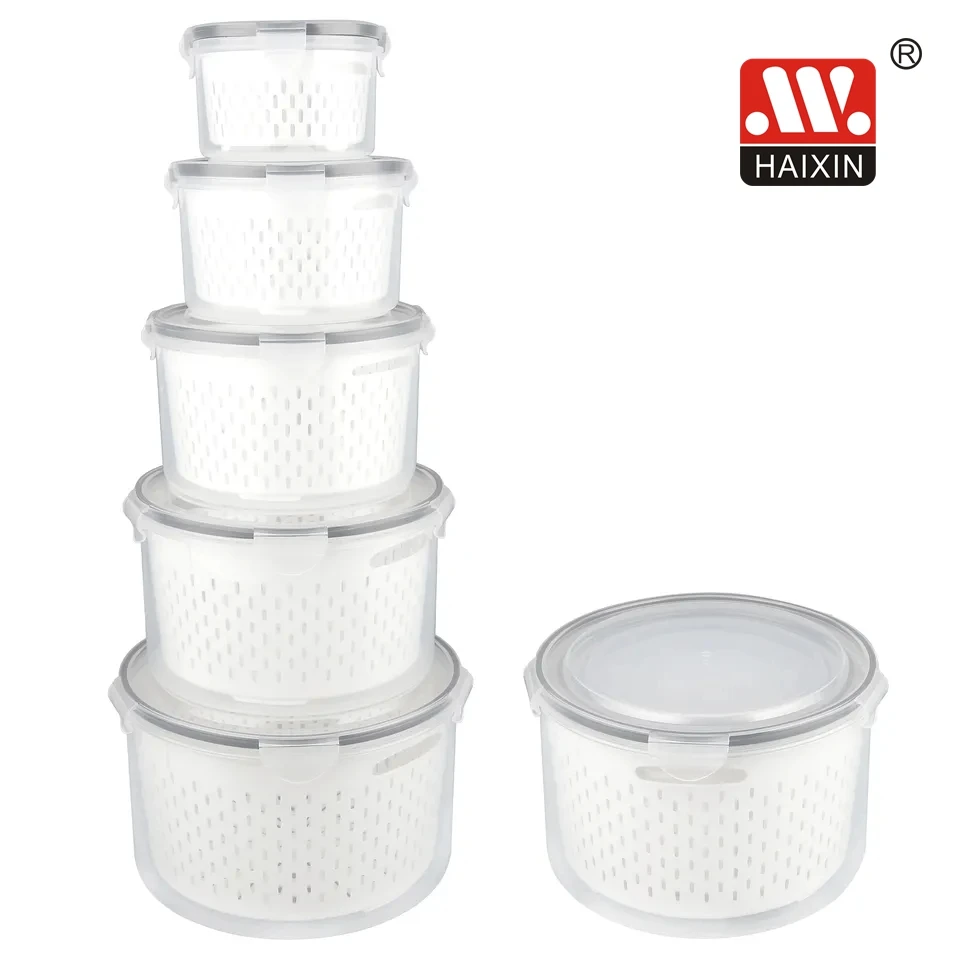 Item | 5pcs Home Kitchen Organizer Vegetable Fruit Drainage Basket Plastic Food Storage Box Set With Drain Tray |
