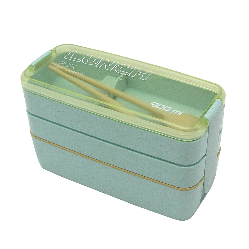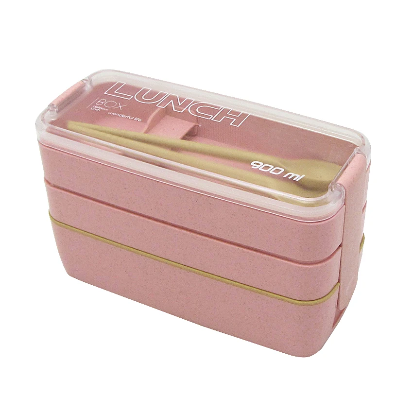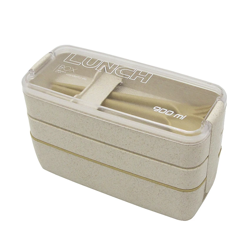 3 Layer 900ml Adult Children Straw Lunch Box Bento Set With Spoon