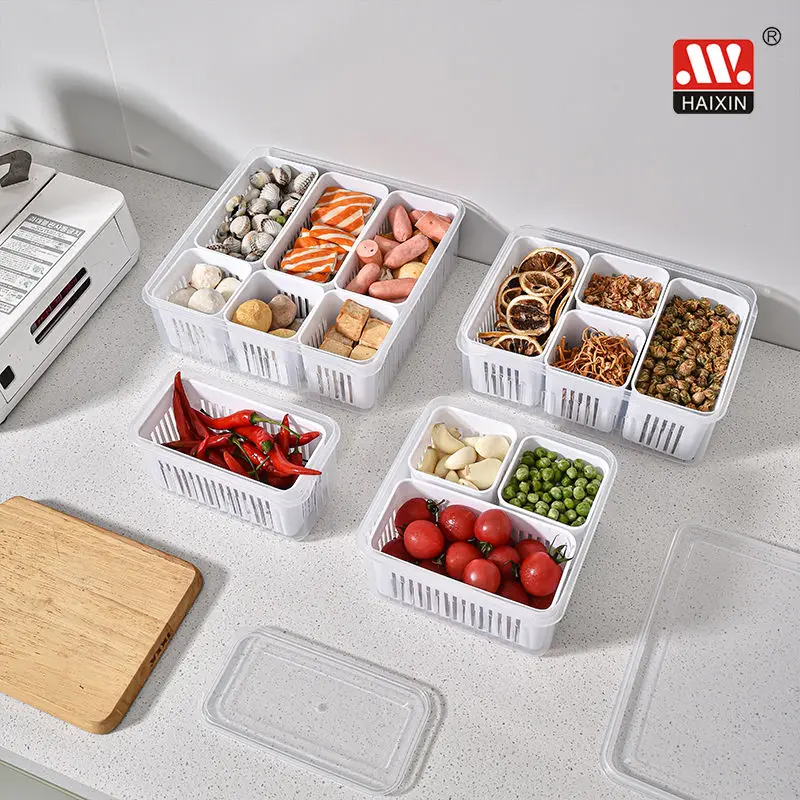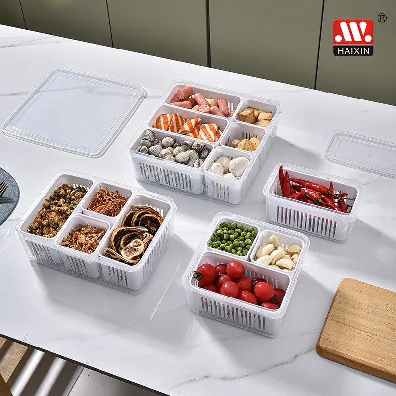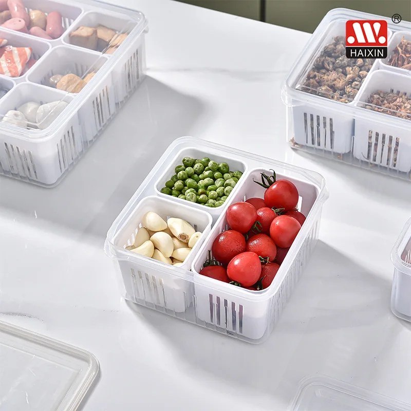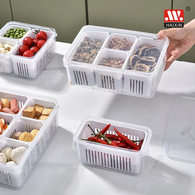 Item | HAIXIN Kitchen Pantry Tabletop Organizer Compartment Food Fruits Vegetables Plastic Drain Storage Box With Lid |