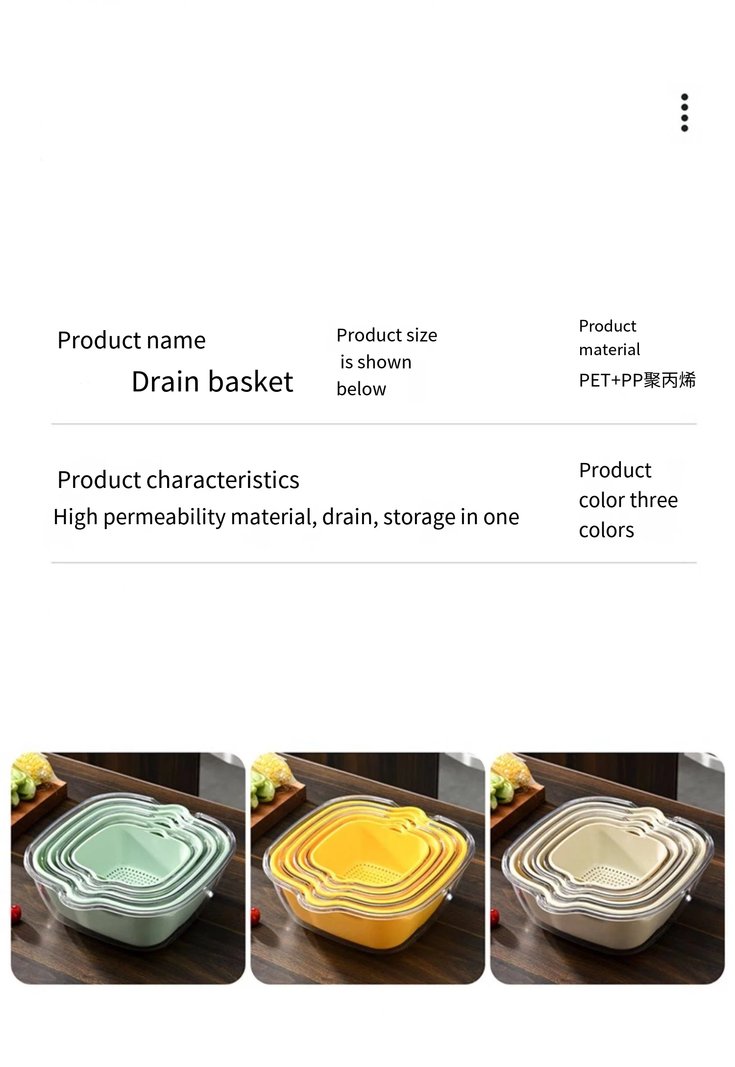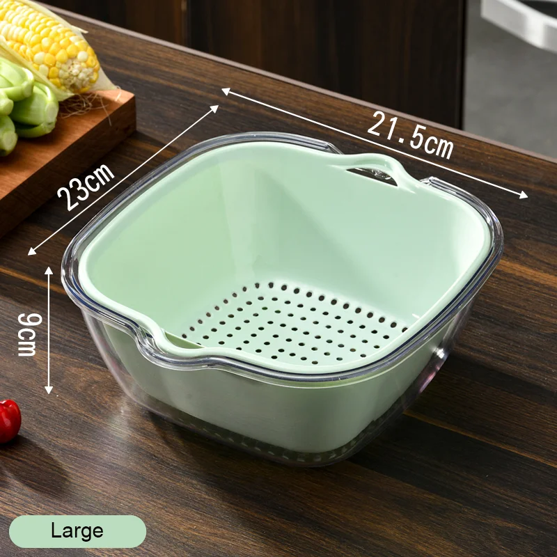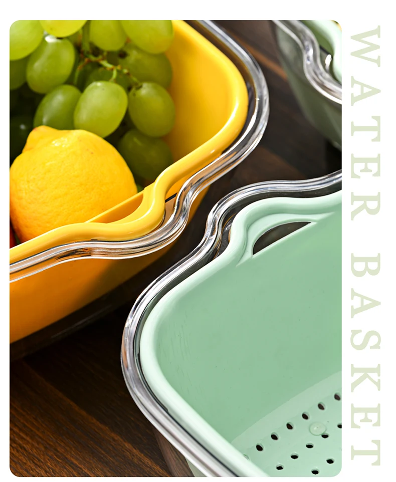 Multifunctional Draining Washing Basket Household Kitchen Colander With Handle Stackable Plastic Double Layer Strainers