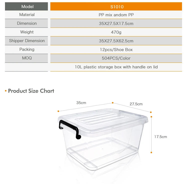 Classic design 10L polypropylene storage boxes