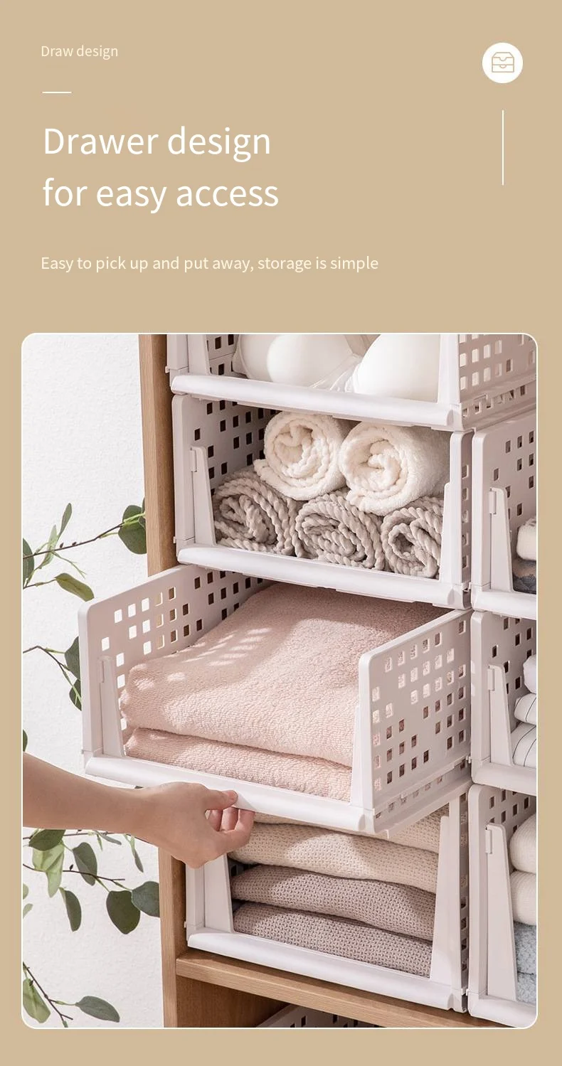 Wholesale Collapsible Stackable Storage Drawer Foldable Clothes Organizer Plastic Underwear Storage Box
