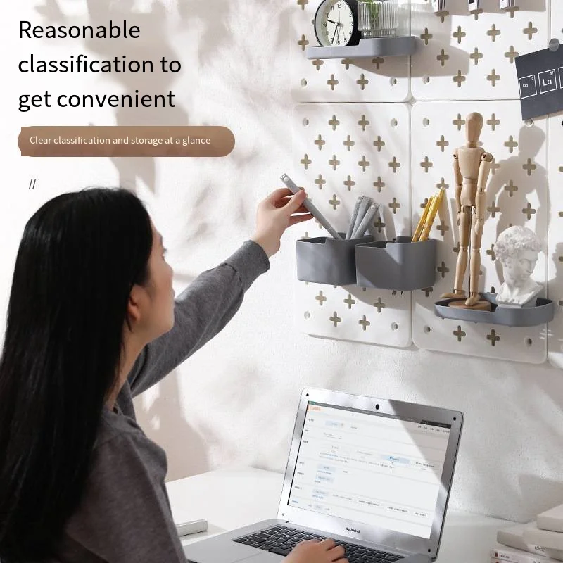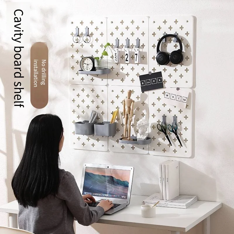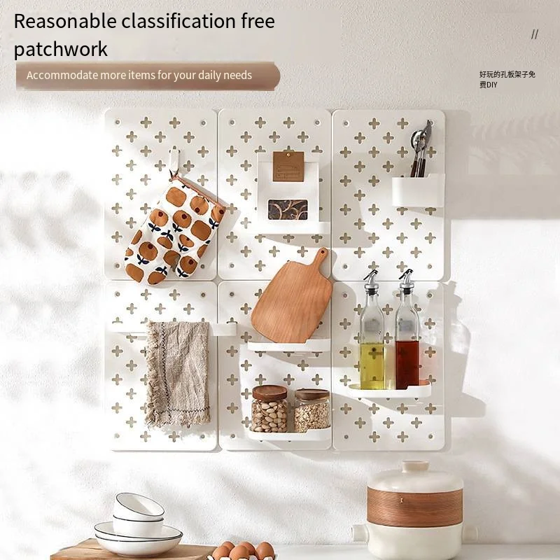 Wall-Mounted Decorative Wall Shelves No-Punch Household With Holes Pegboard Dormitory Kitchen Wall Storage Rack