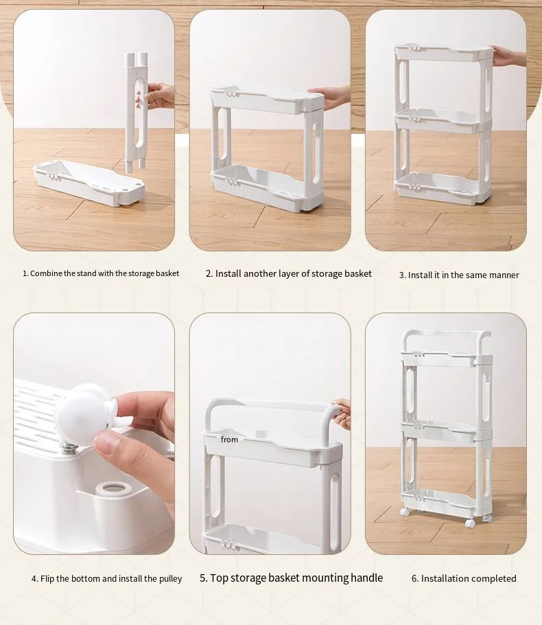 Detachable Plastic Storage Trolley Wholesale Household Storage Rack Portable Bathroom With Wheels Storage Cart