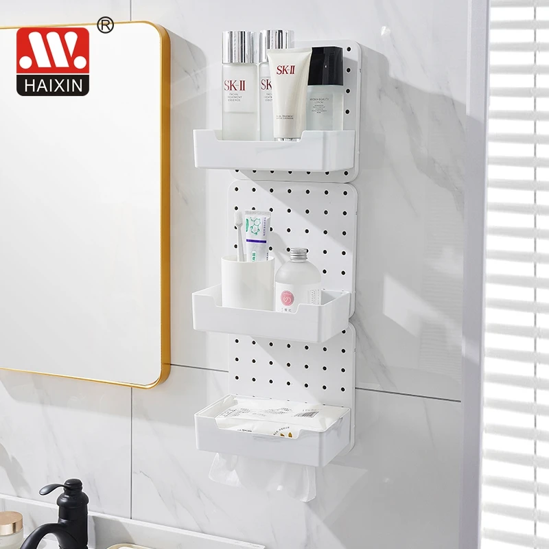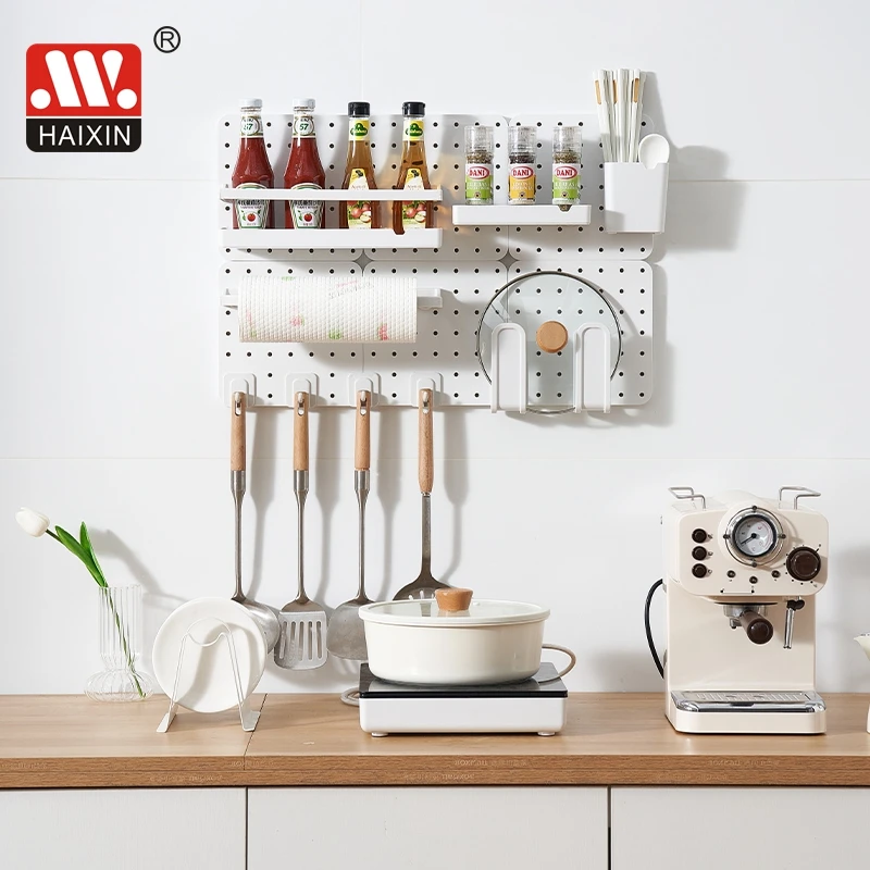 Item | Kitchen Home Office Removable Plastic White Multifunction Perforated Board Wall-Mounted Storage Box |