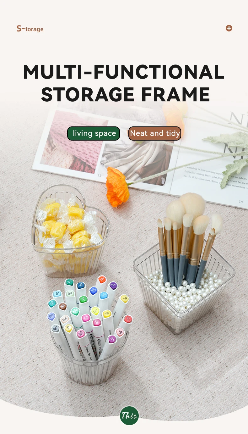 Item | Home Desktop Square Cosmetics Organizer Transparent Plastic Storage Box With Handle |