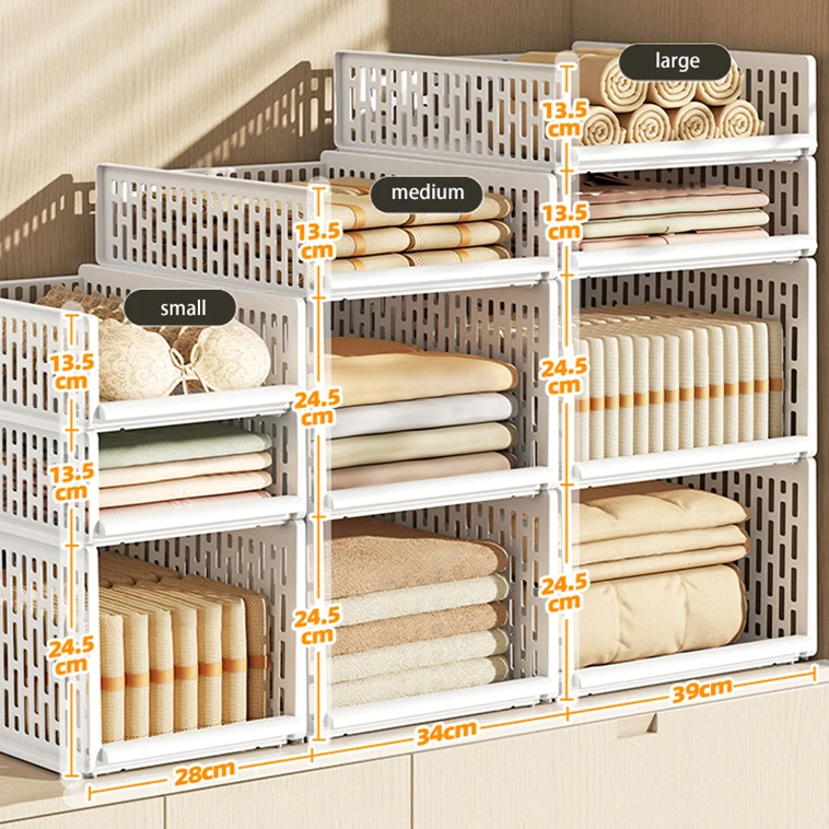 White Cabinet Household Home Use PP Folding Foldable Basket Storage Organizer Containers Wardrobe Clothes Assistant