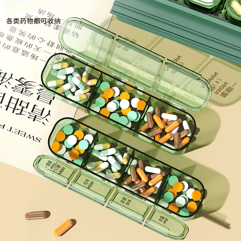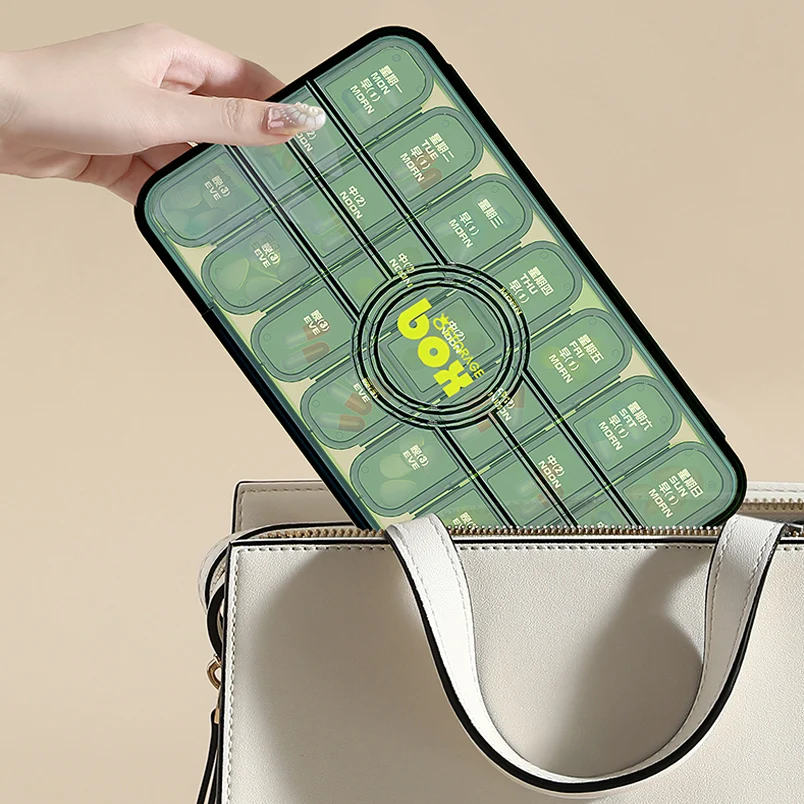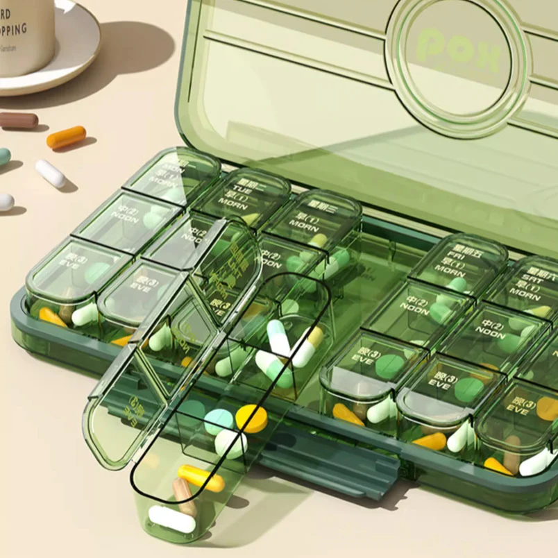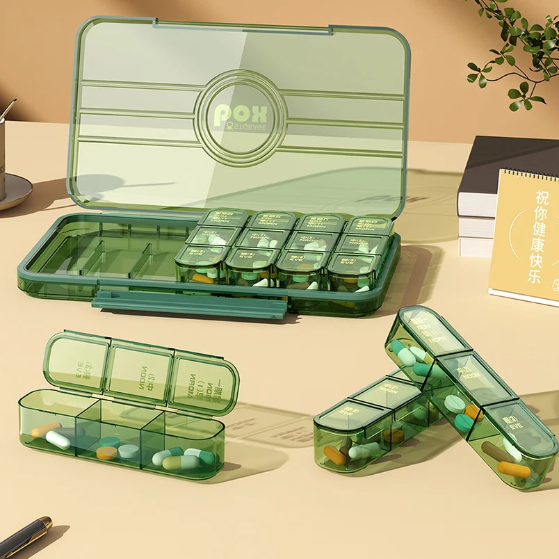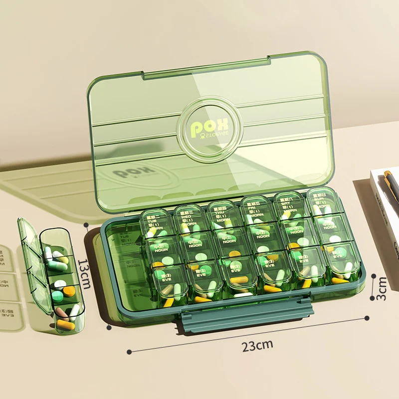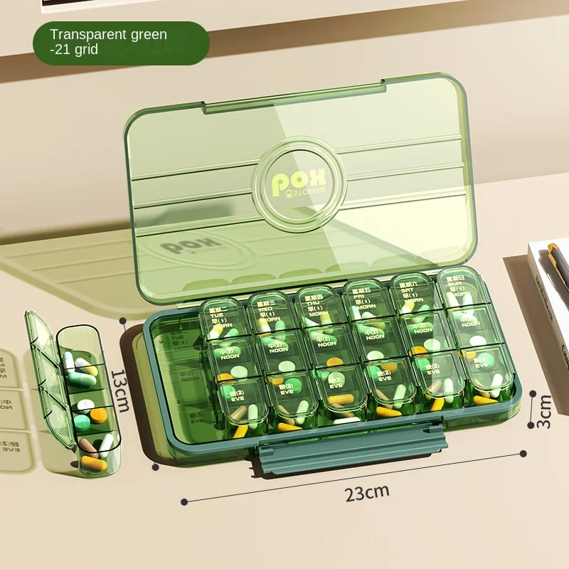 Jinmao Weekly Mini 21 Split Grid Detachable Travel Pill Box Storage Green Boxes Container Clear Coffee Medical Case