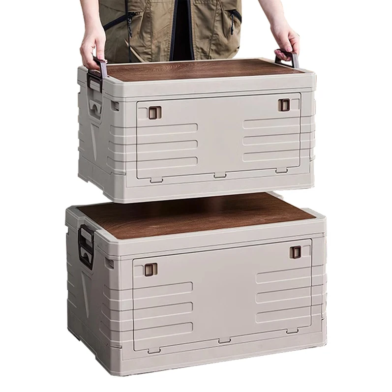 Large Camping 30 50 70L Plastic Durable Folding Storage Box Containers Organization Boxes & Bins Army Green with Wooden Lid