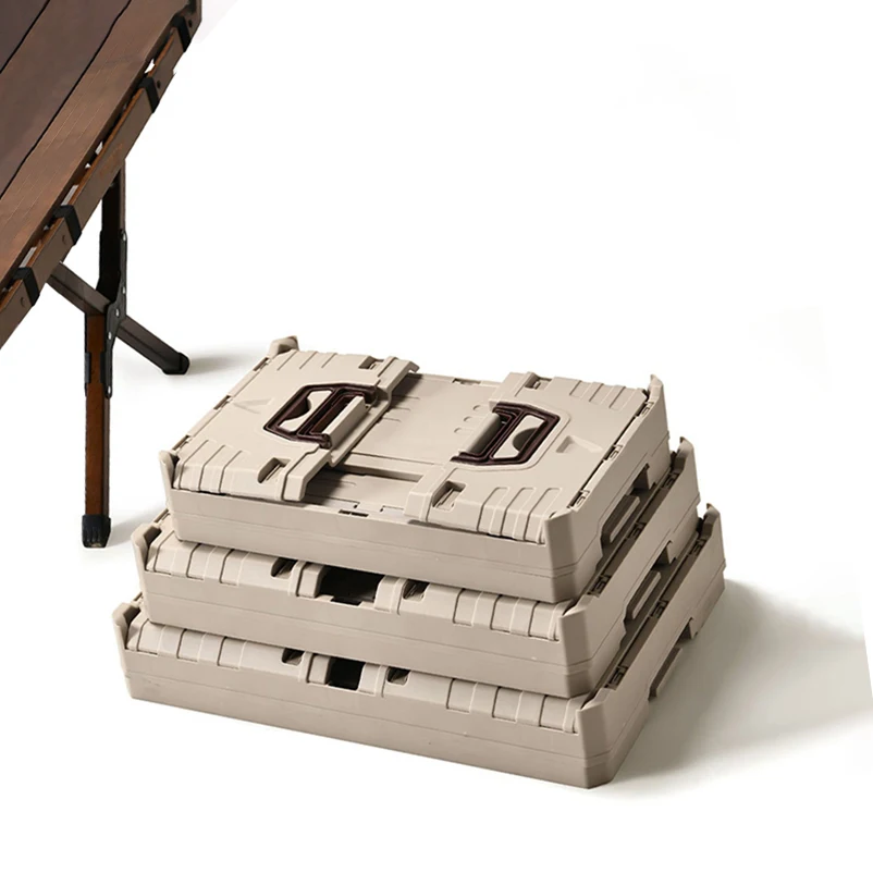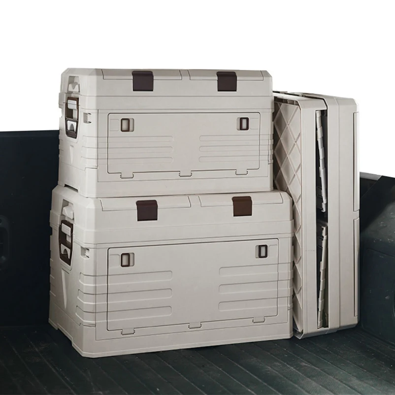 Side Door Folding Camping Storage Boxes & Bins White Hot Stackable Collapsible PP Plastic Containers set Wooden Cover