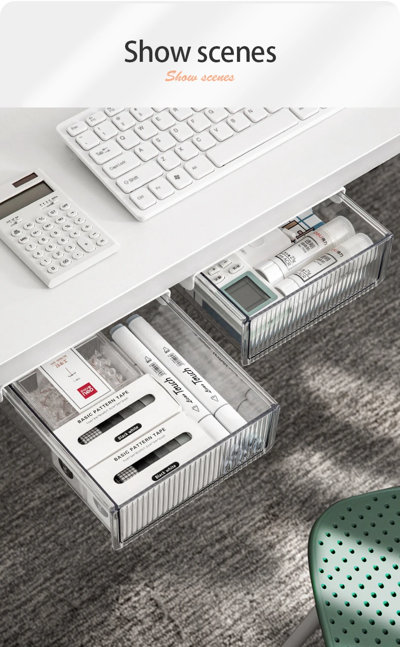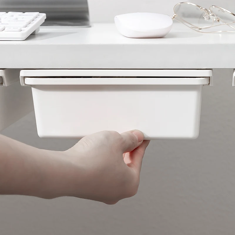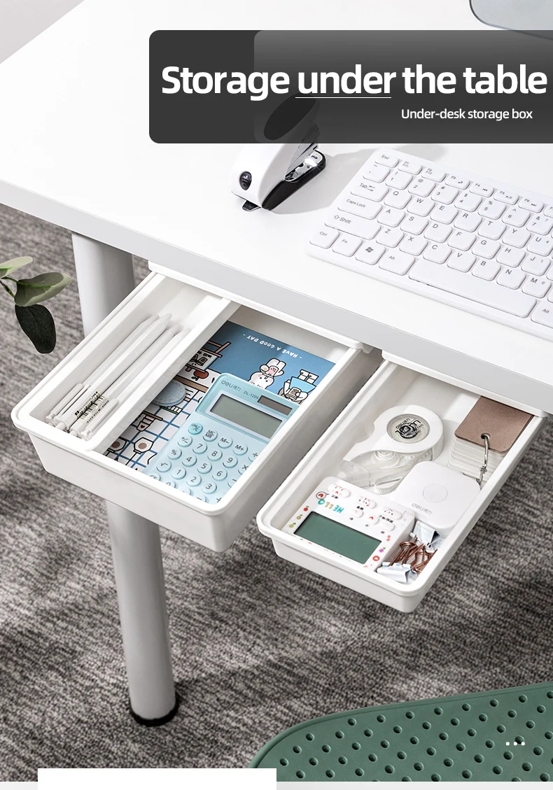 AU CAT Under Desk Drawer, Set for Office/Bedroom/School/Kitchen, Self-Adhesive Under Desk Storage for Phone/Pens/Pencils