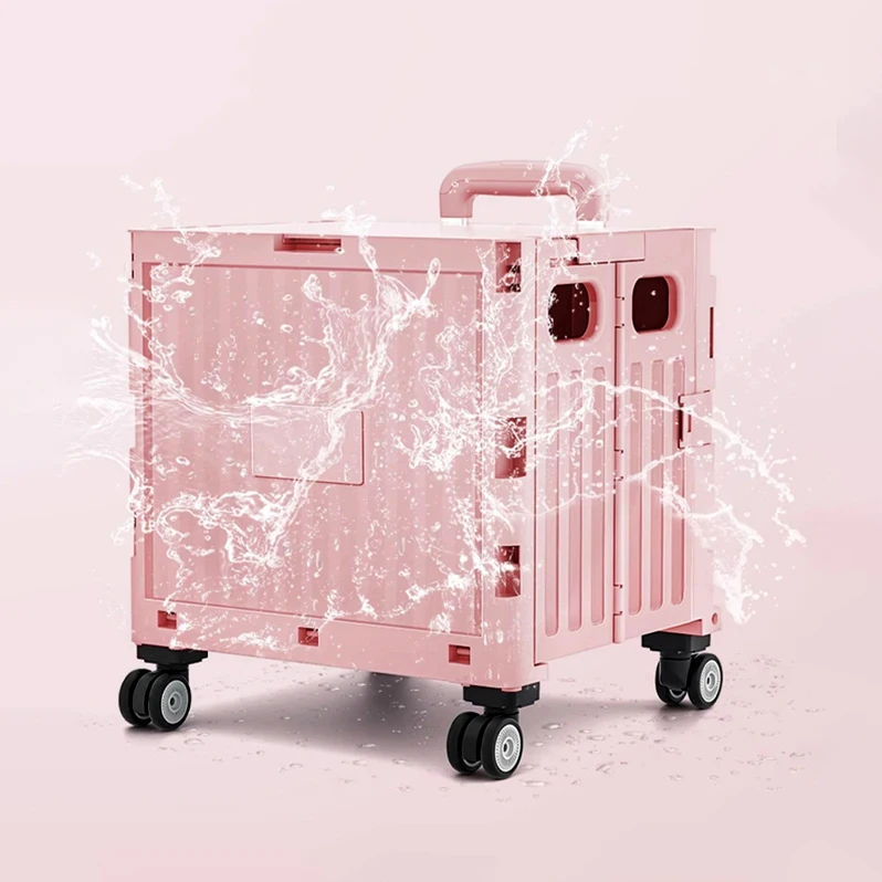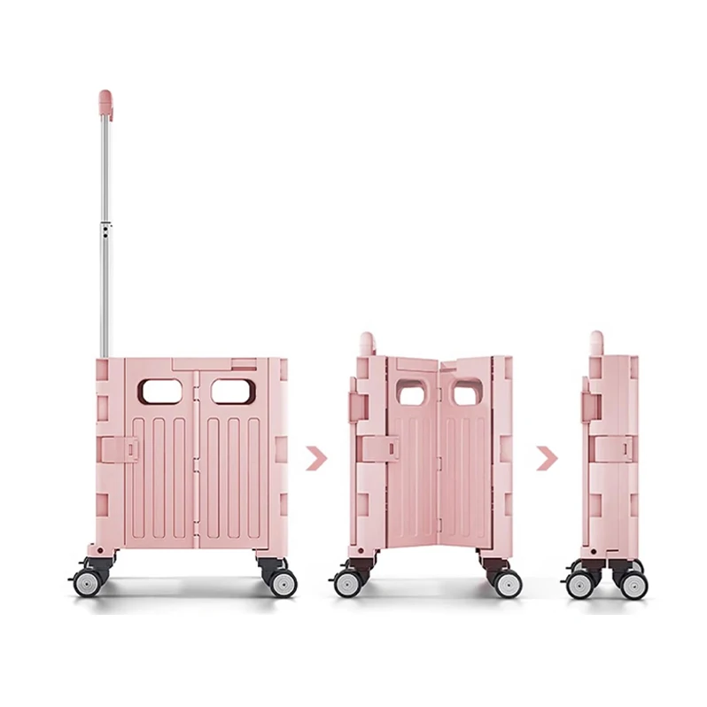 Portable Car Storage Organizer Plastic Iron Collapsible Grocery Market Pink Gift Shop Folding Shopping Trolley Cart for Woman